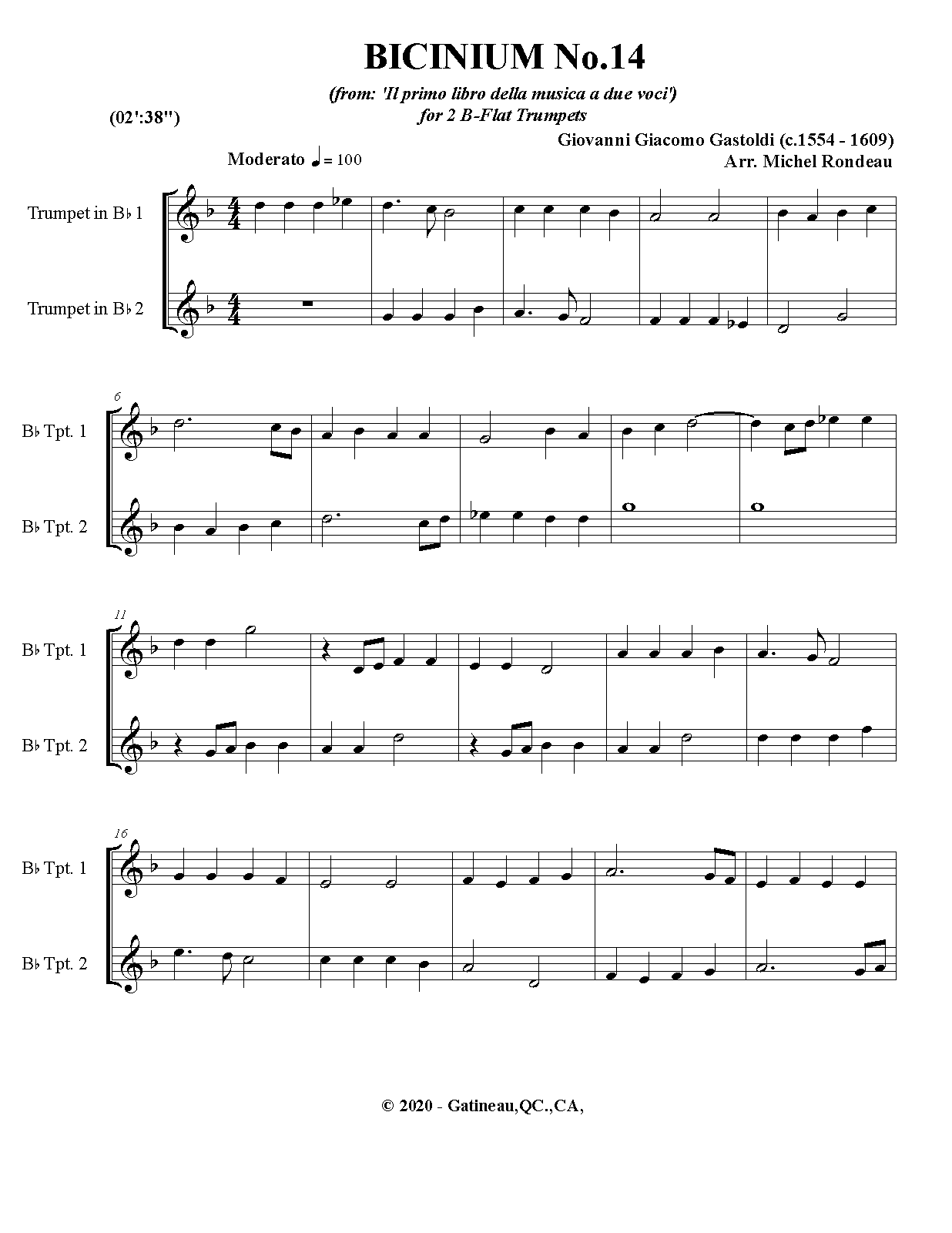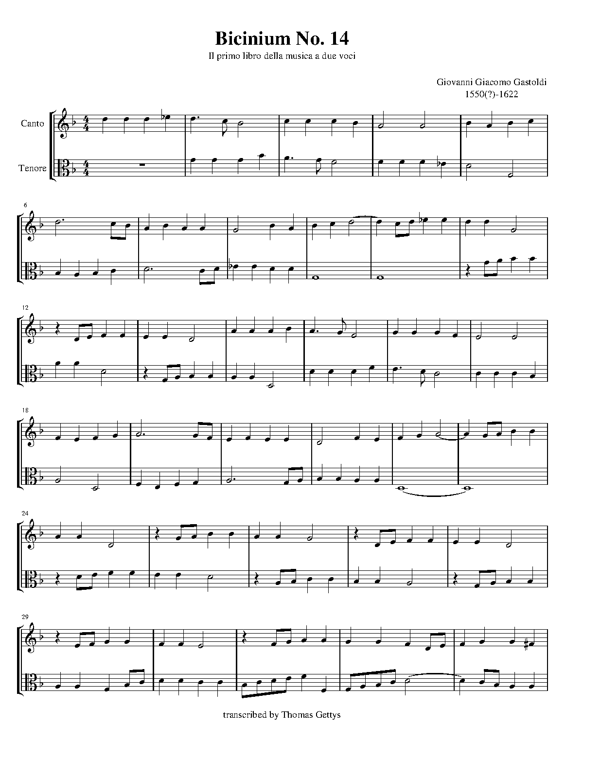| Genre Categories | Bicinia; For treble, tenor instruments; Scores with open instrumentation; |