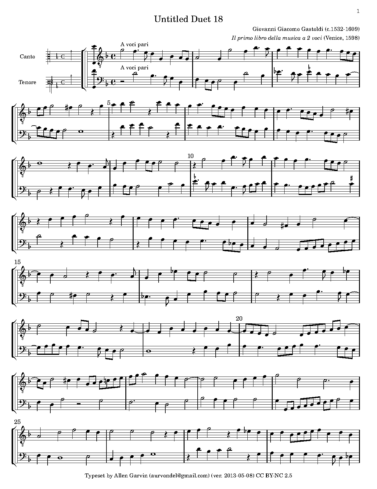 | First Publication | 1598 in Il primo libro della musica a due voci (No.18) |