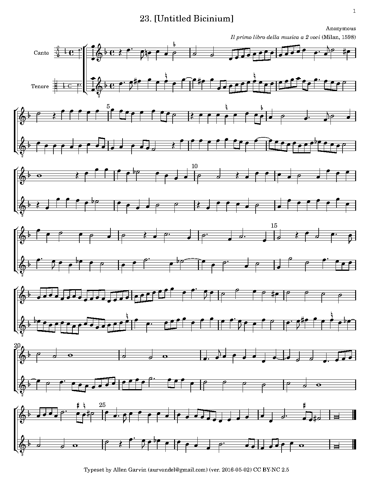 | First Publication | 1598 in Il primo libro della musica a due voci (No.23) |