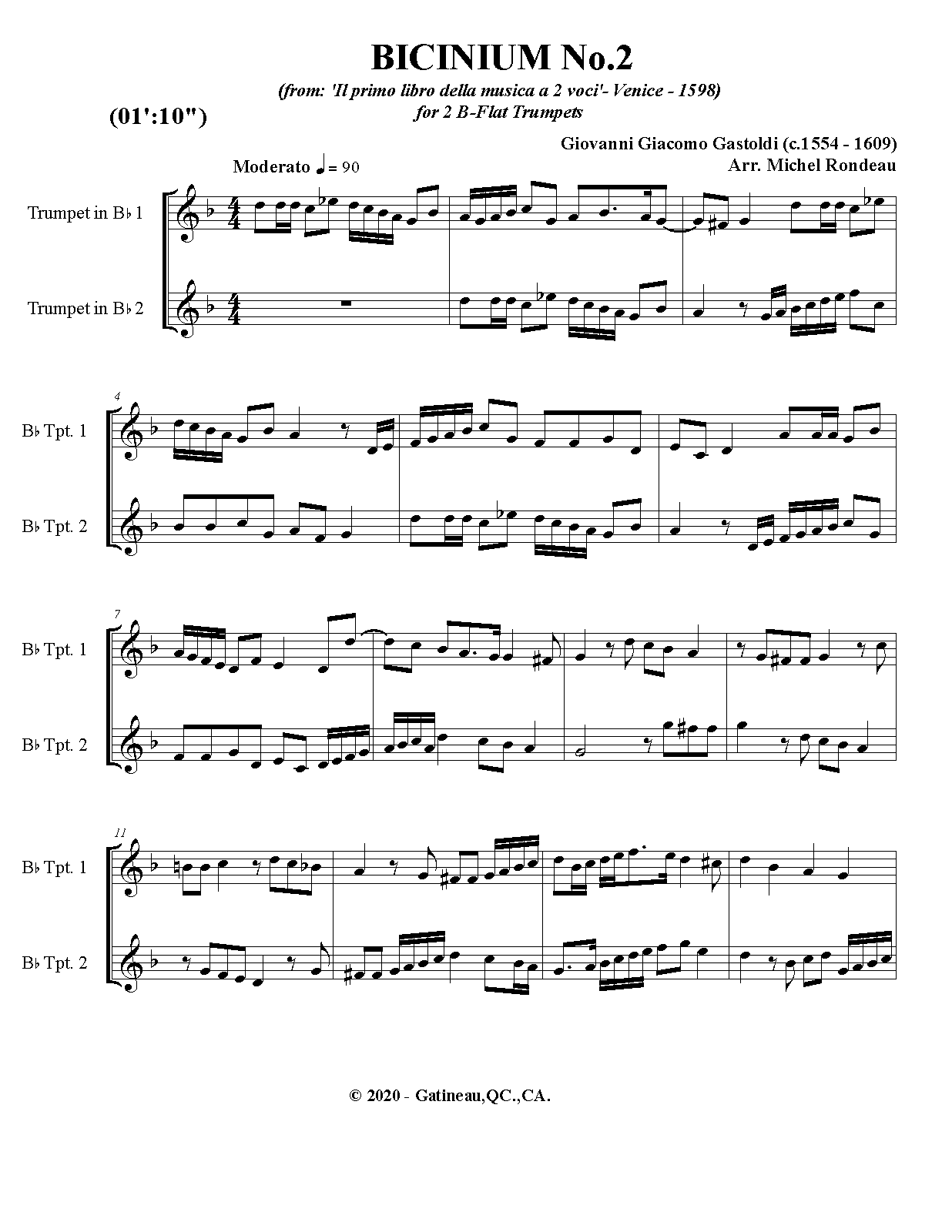 | First Publication. | 1598 in Il primo libro della musica a due voci (No.2) |