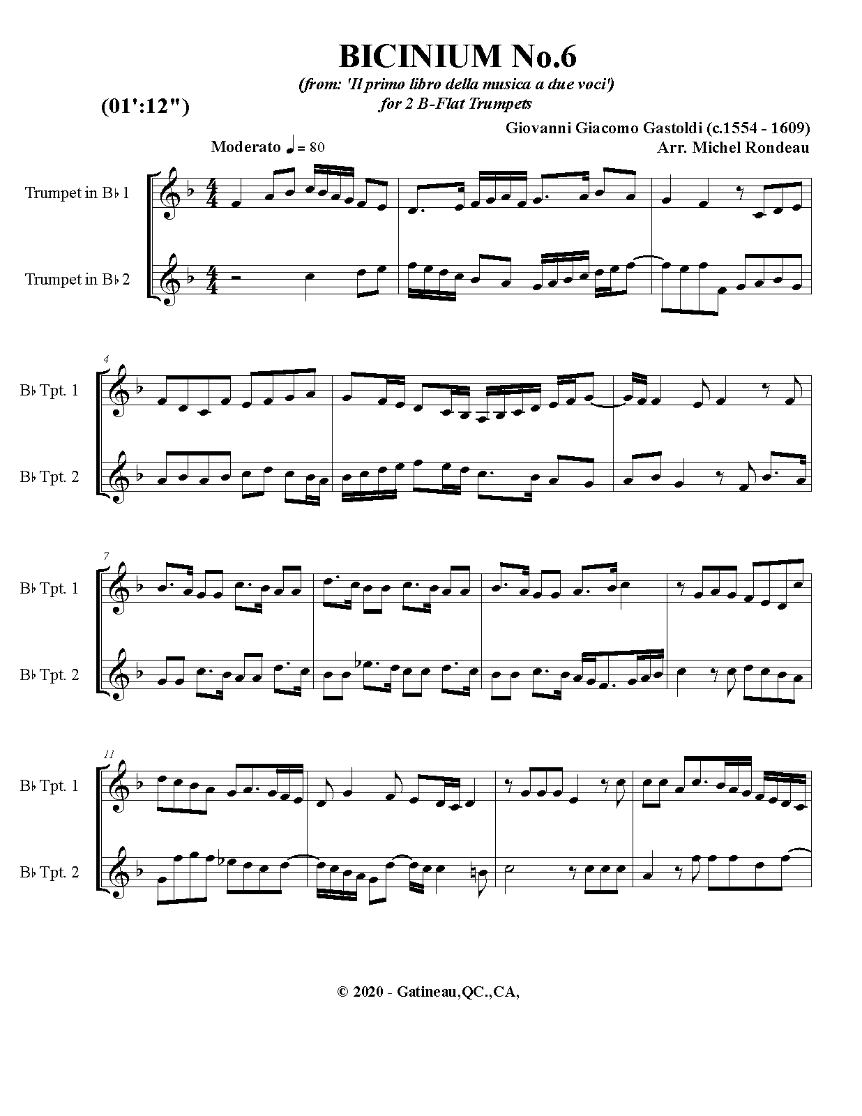 | First Publication | 1598 in Il primo libro della musica a due voci (No.6) |