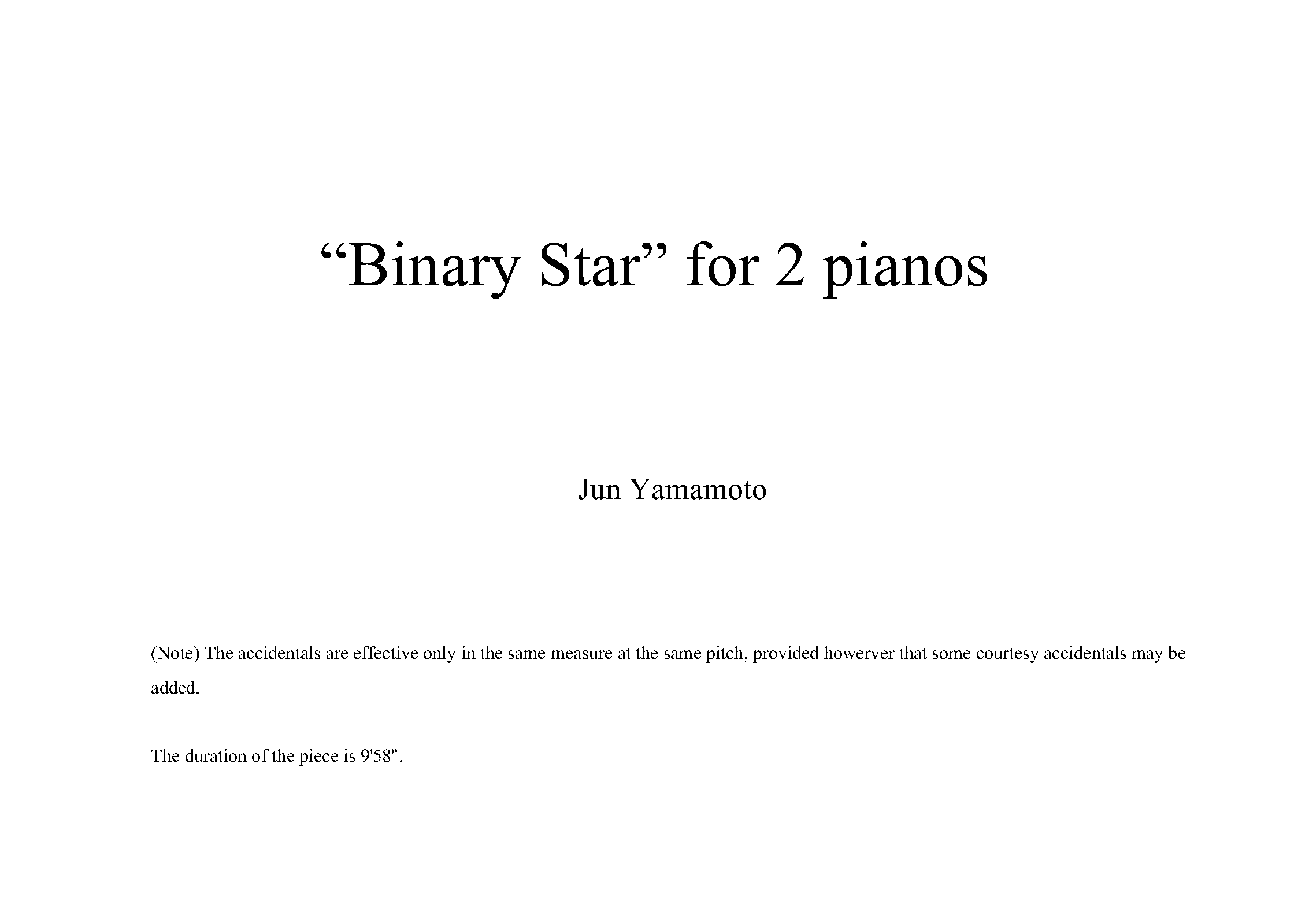 | Work Title | Binary Star for 2 Pianos |