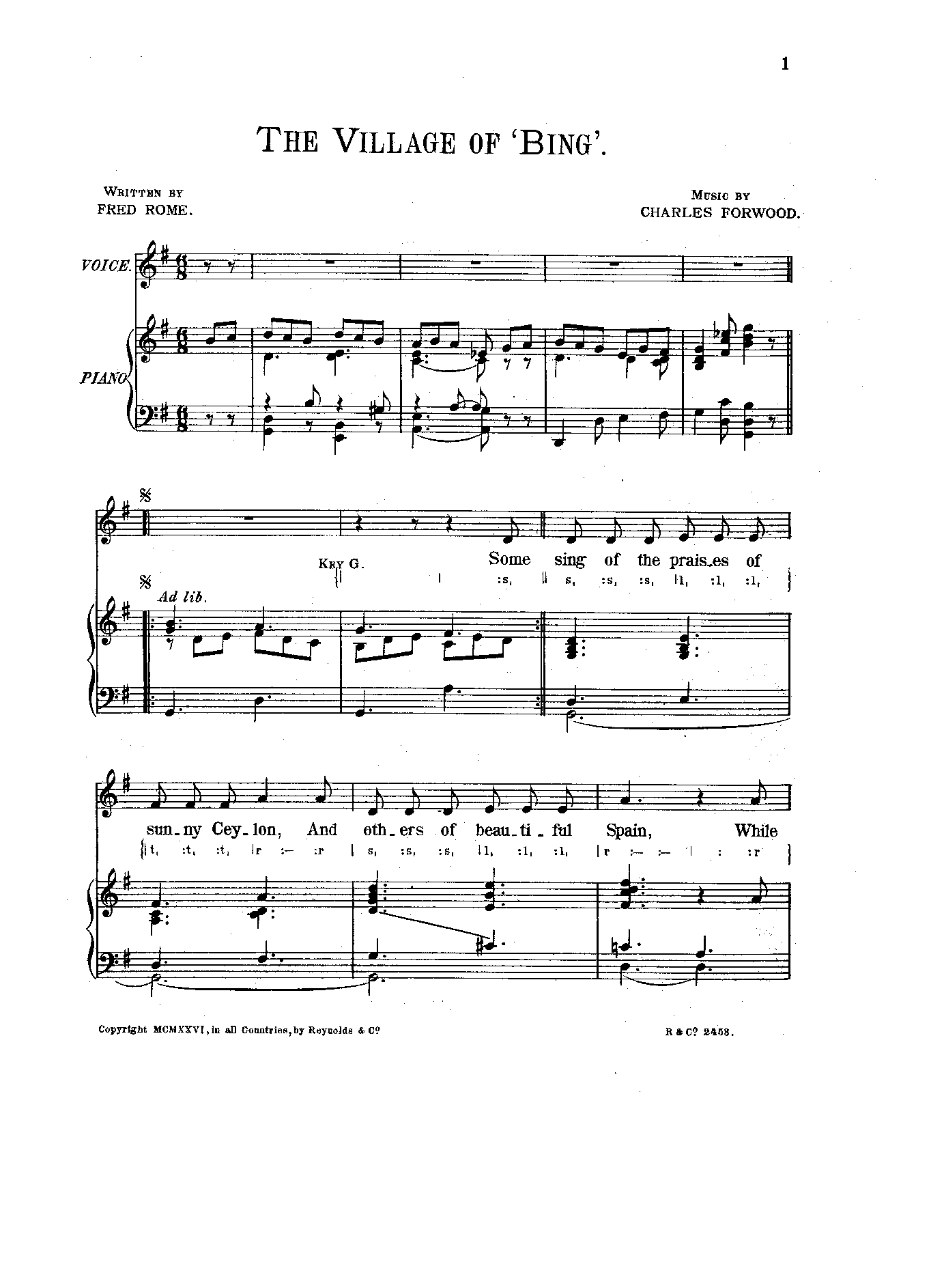 Publisher. Info. London: Reynolds & Co., 1926. Plate R & Co. 2453.