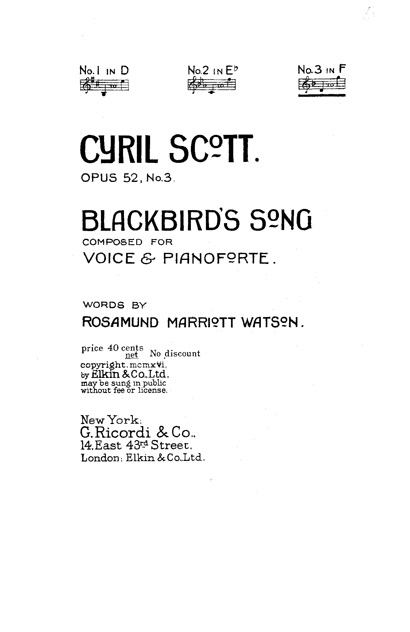 | Genre Categories | Songs; For voice, piano; For voices with keyboard; |