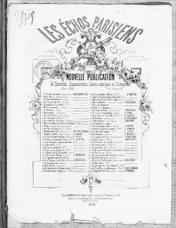 | Genre Categories | Chansons; Songs; For voice, piano; |