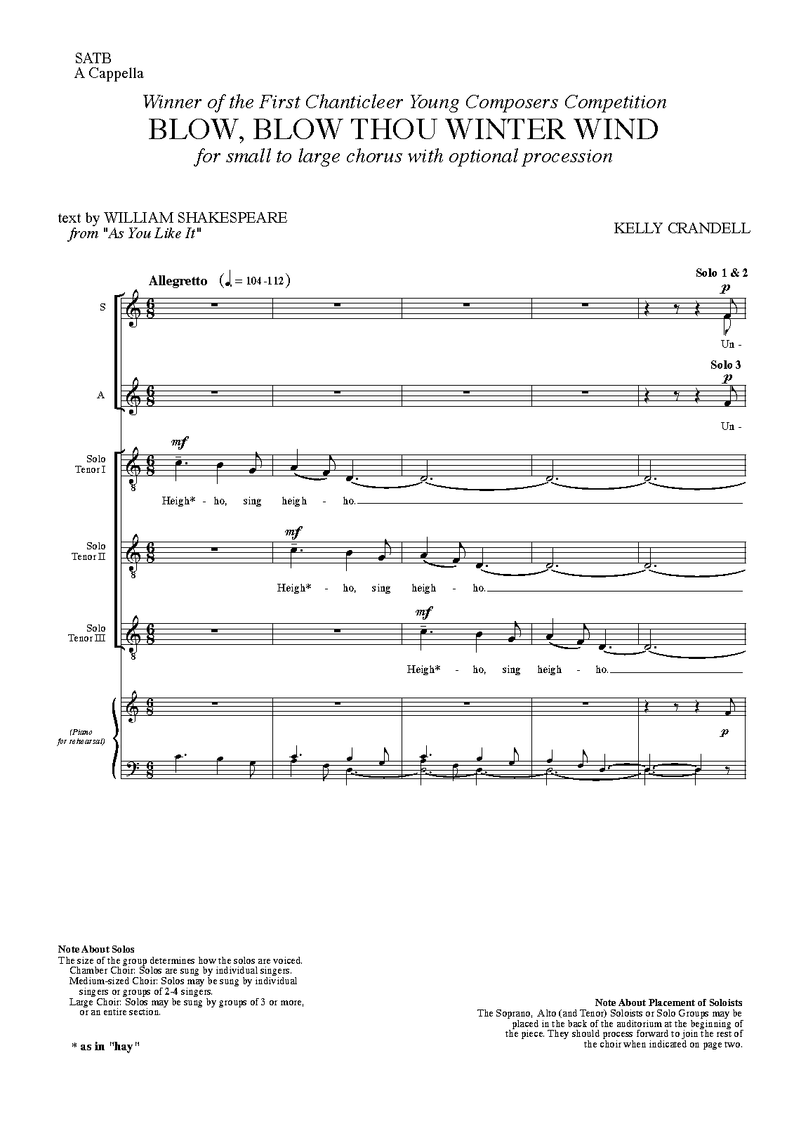 Blow, Blow Thou Winter Wind (SATB) - Sample of 1st two pages
