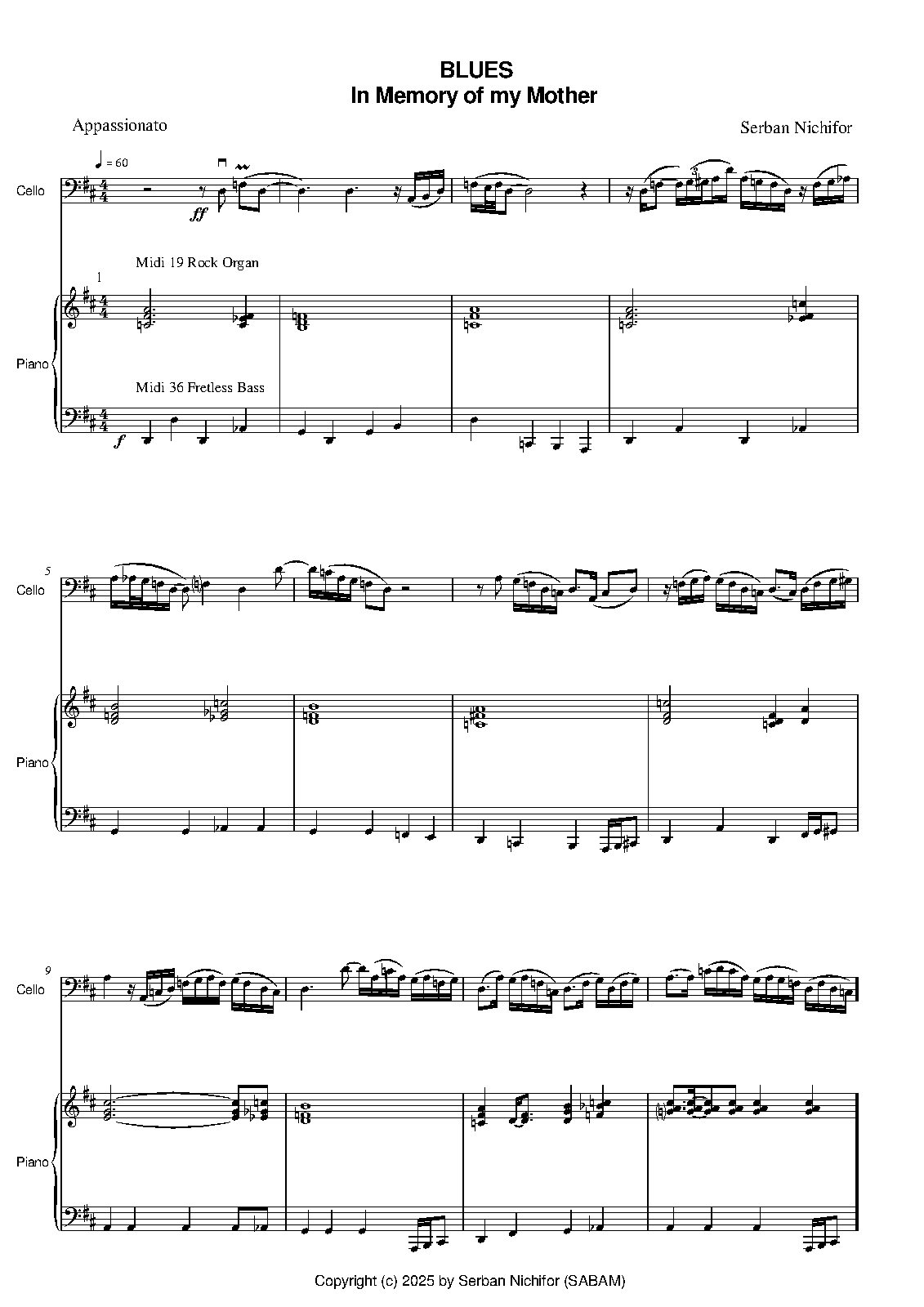 | Work Title | Blues for Cello and Piano (or Organ) |