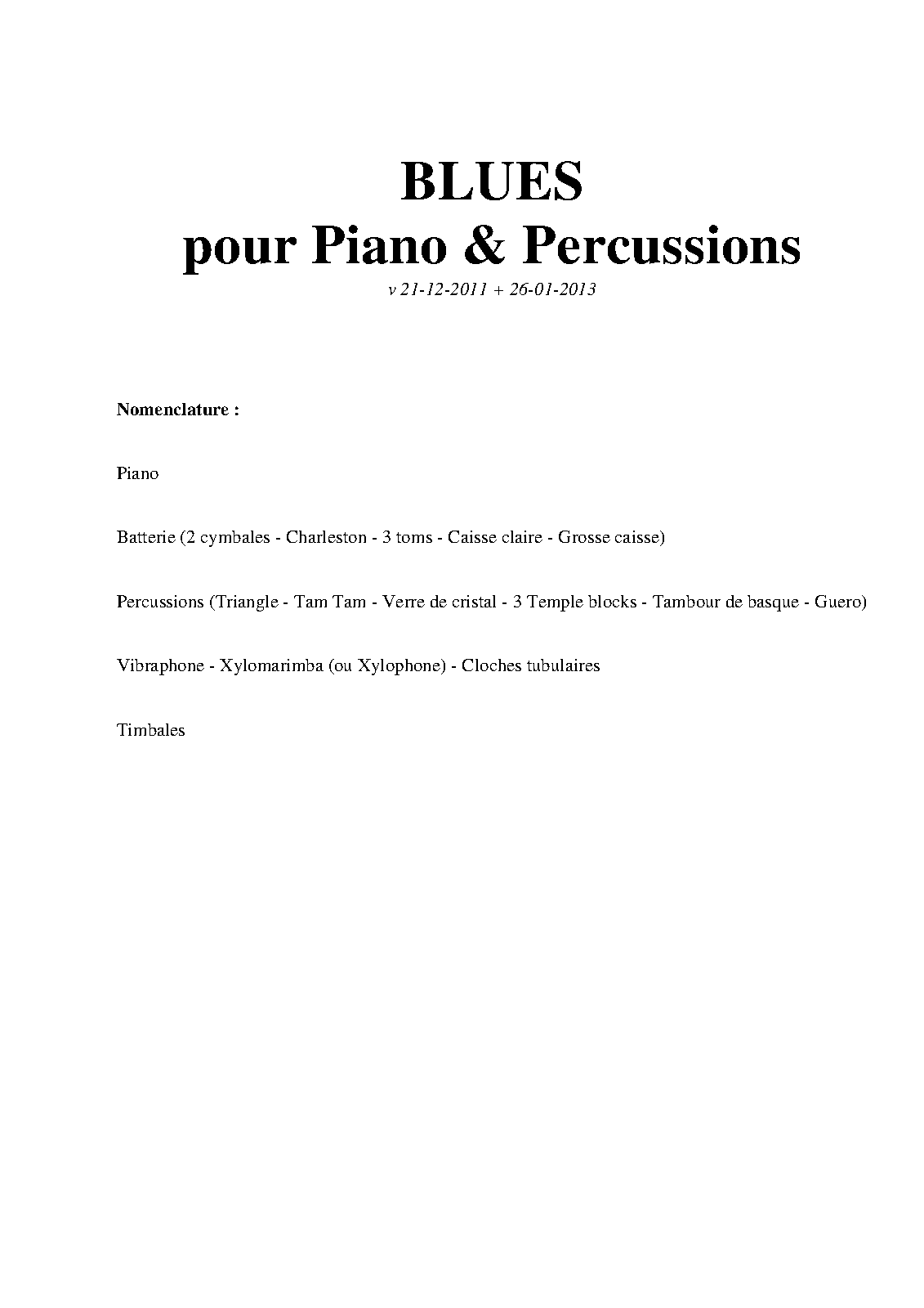 | Genre Categories | Blues; For percussion, piano; Scores featuring percussion soloists; |