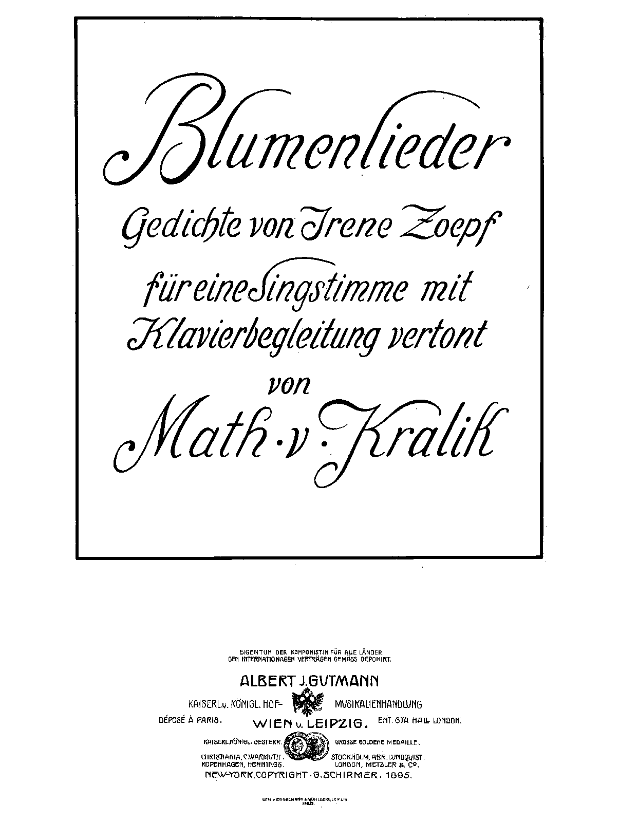 | First Publication | 1895 – New York: Schirmer / Vienna: ? (probably A.J. Gutmann) |