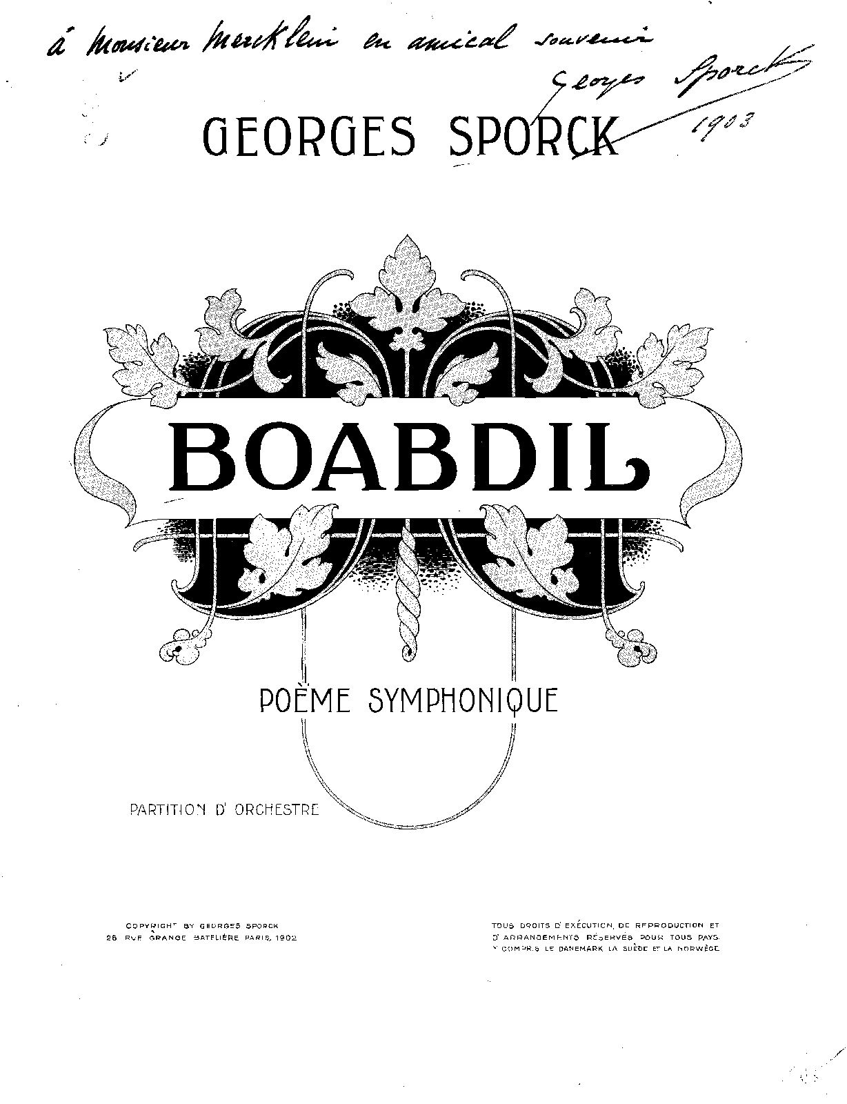 | Alternative. Title | Boabdil, poème symphonique [pour] orchestre |