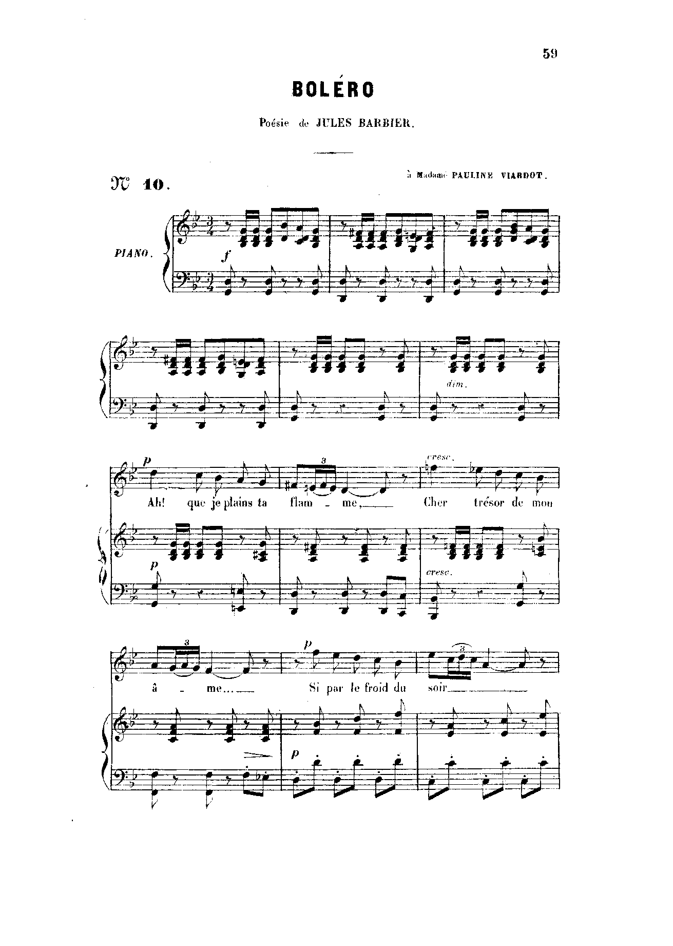| Extra Information | Original text was translated from Spanish (anonymous author) to French by Jules Barbier. Later translated to English by Miss B. Kett and orchestrated in 1874. |