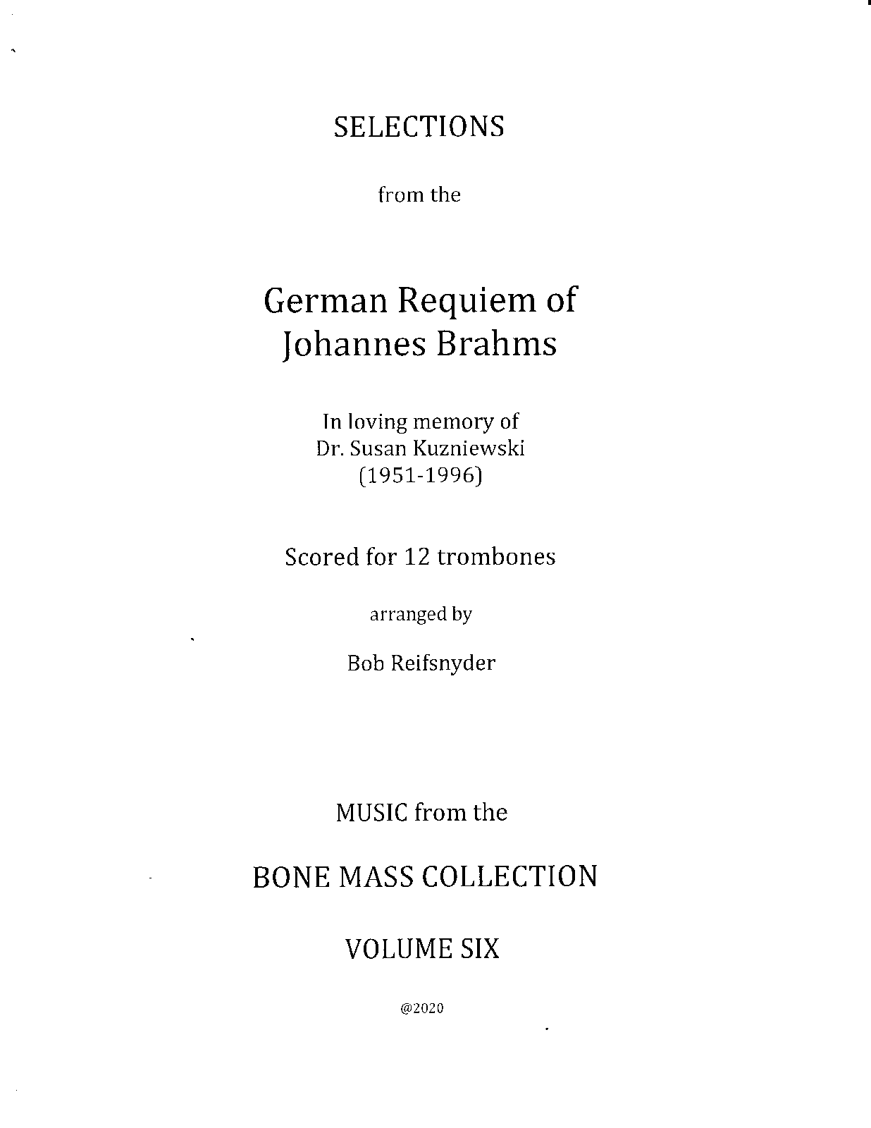 | Instrumentation | 3 alto trombones, 6 tenor trombones, 3 bass trombones (arranged) |