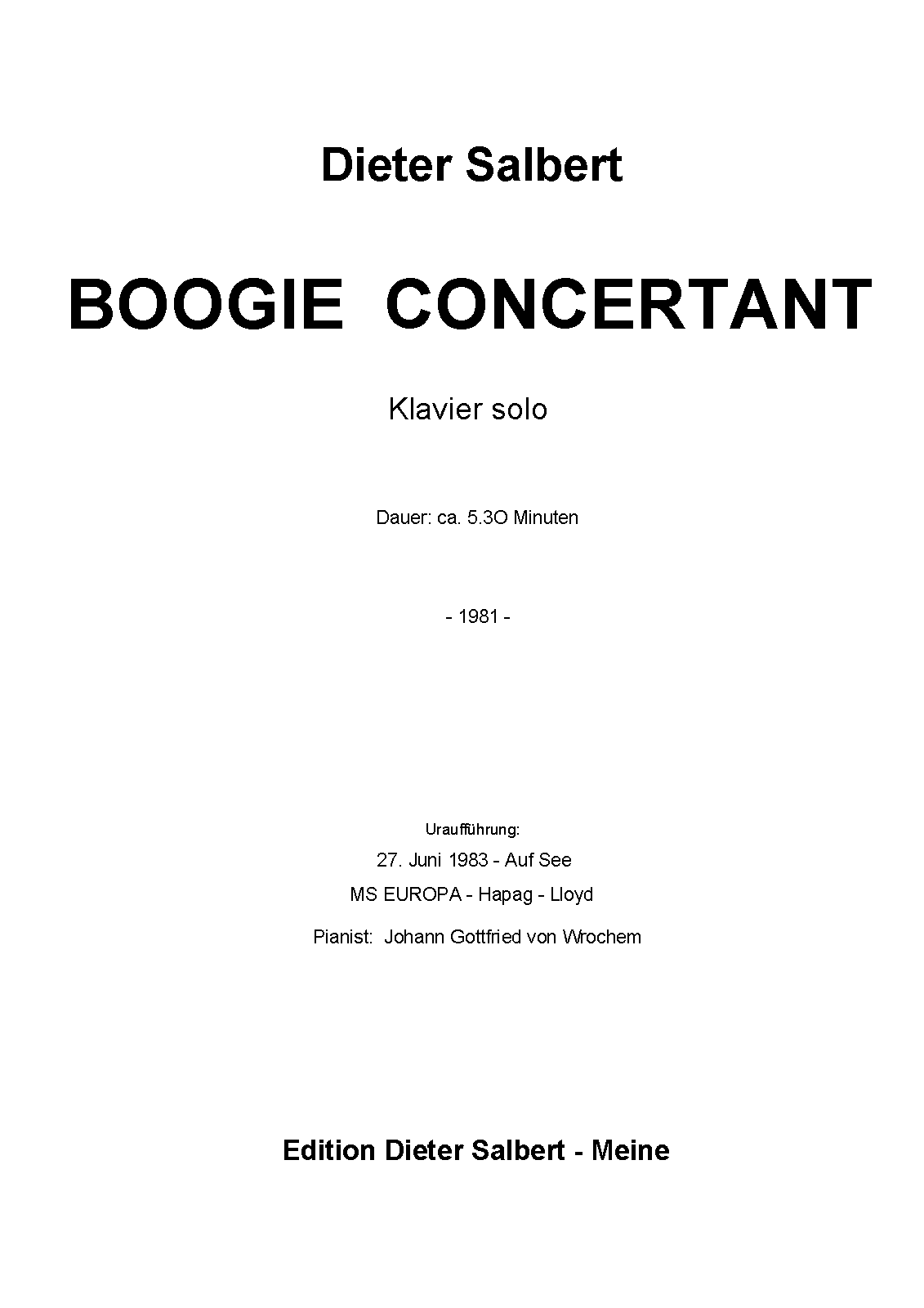 | Extra Information | Uraufführung am 27. Juni 1983 auf See - Kreuzfahrtschiff MS EUROPA der HApag-LLoyd - Pianist: Johann Gottfried von Wrochem |