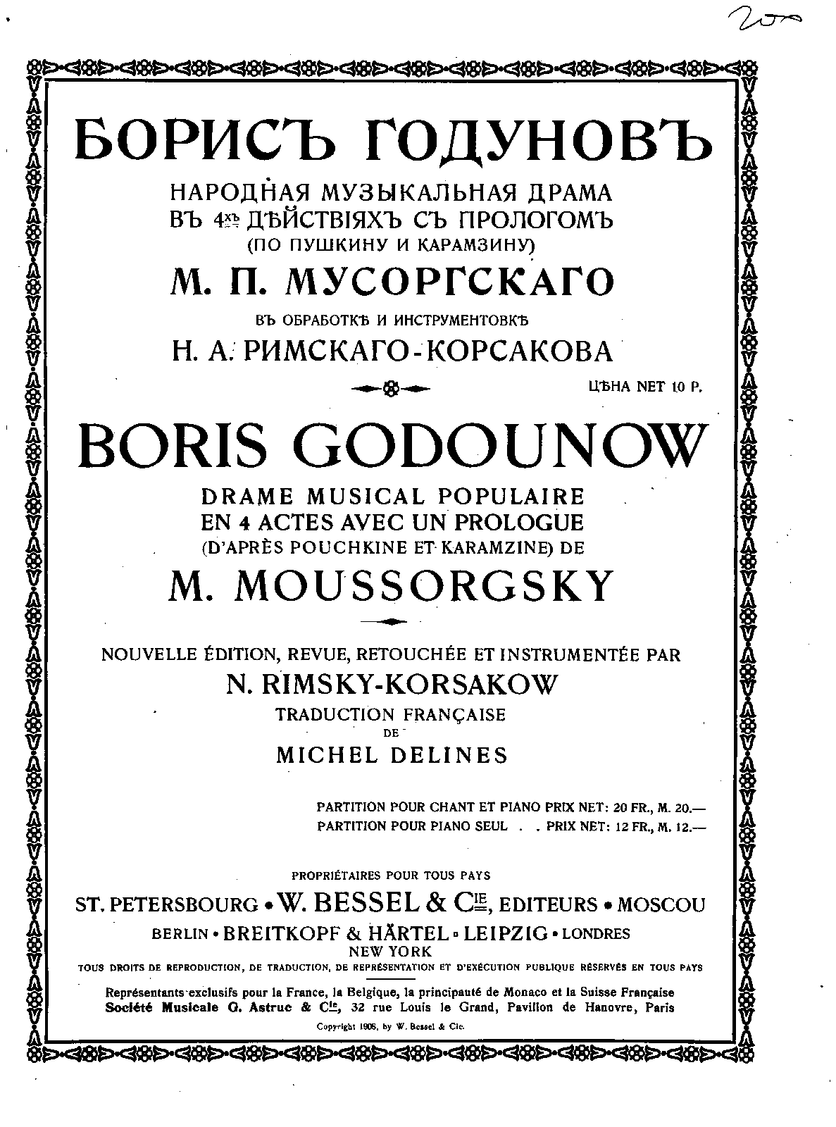 Misc. Notes Mussorgsky's original and revised versions conflated in one edition. Foliation (pp.xxxvii; 1-50; 51-118; 119-228; 229-305; 306-419; 420-469)