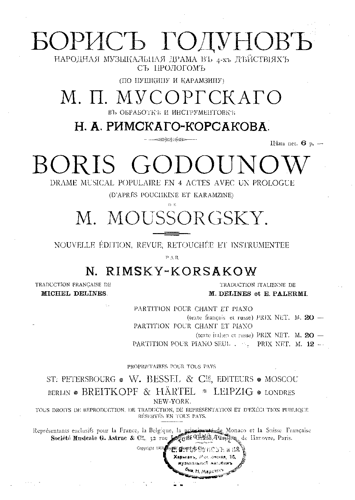 Publisher. Info. St. Petersburg: W. Bessel & Co., 1909.