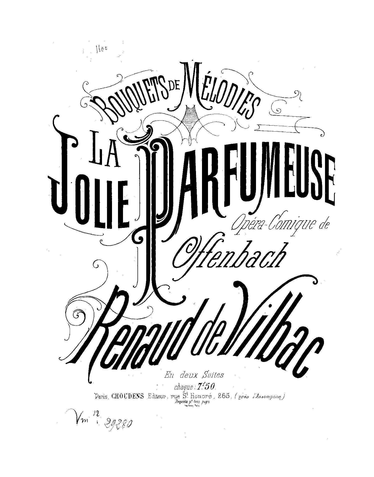 La jolie parfumeuse. Opéra comique en 3 actes de J. Offenbach. Bouquet de mélodie en deux suites.