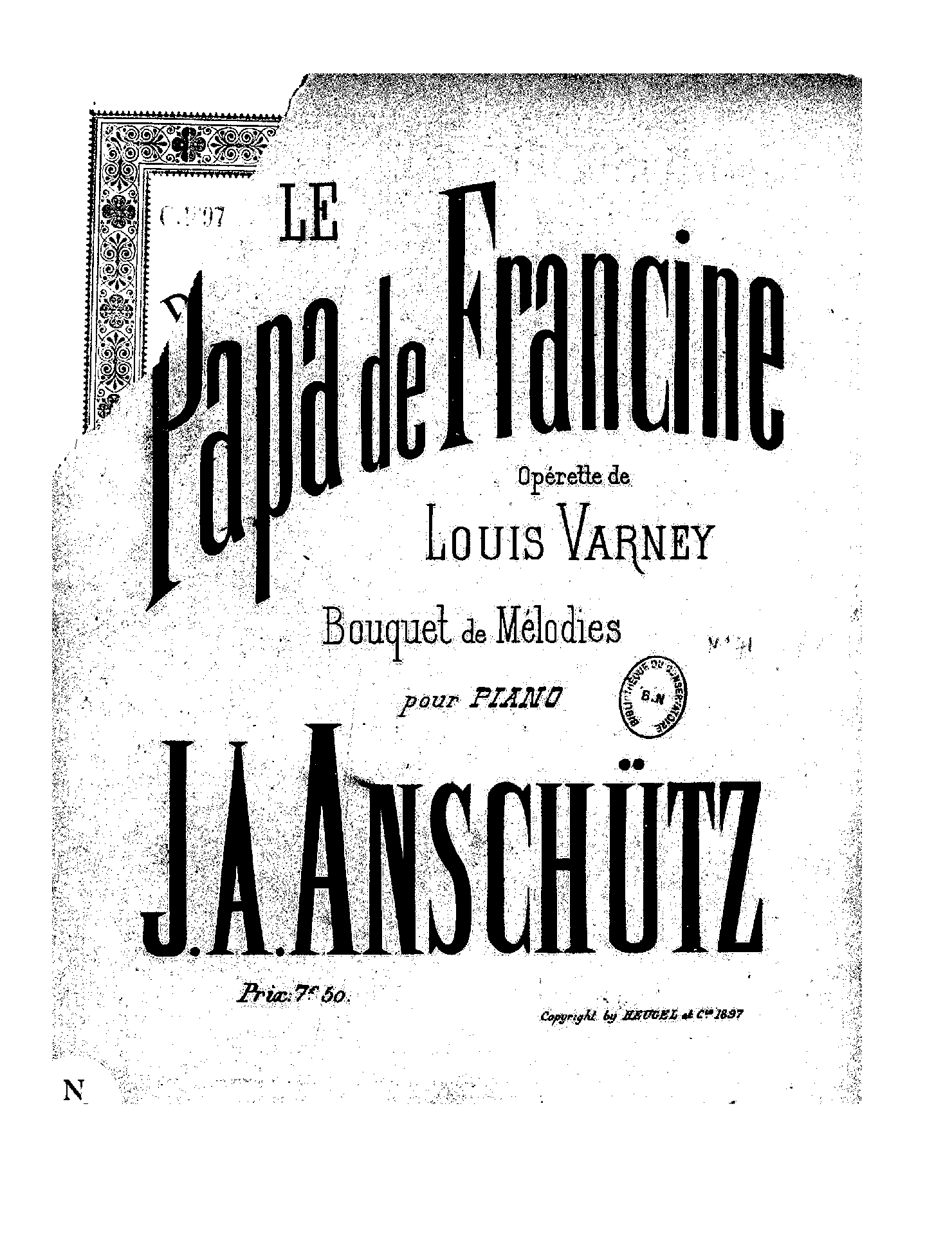 Le papa de Francine. Opérette de Louis Varney. Bouquet de mélodies.