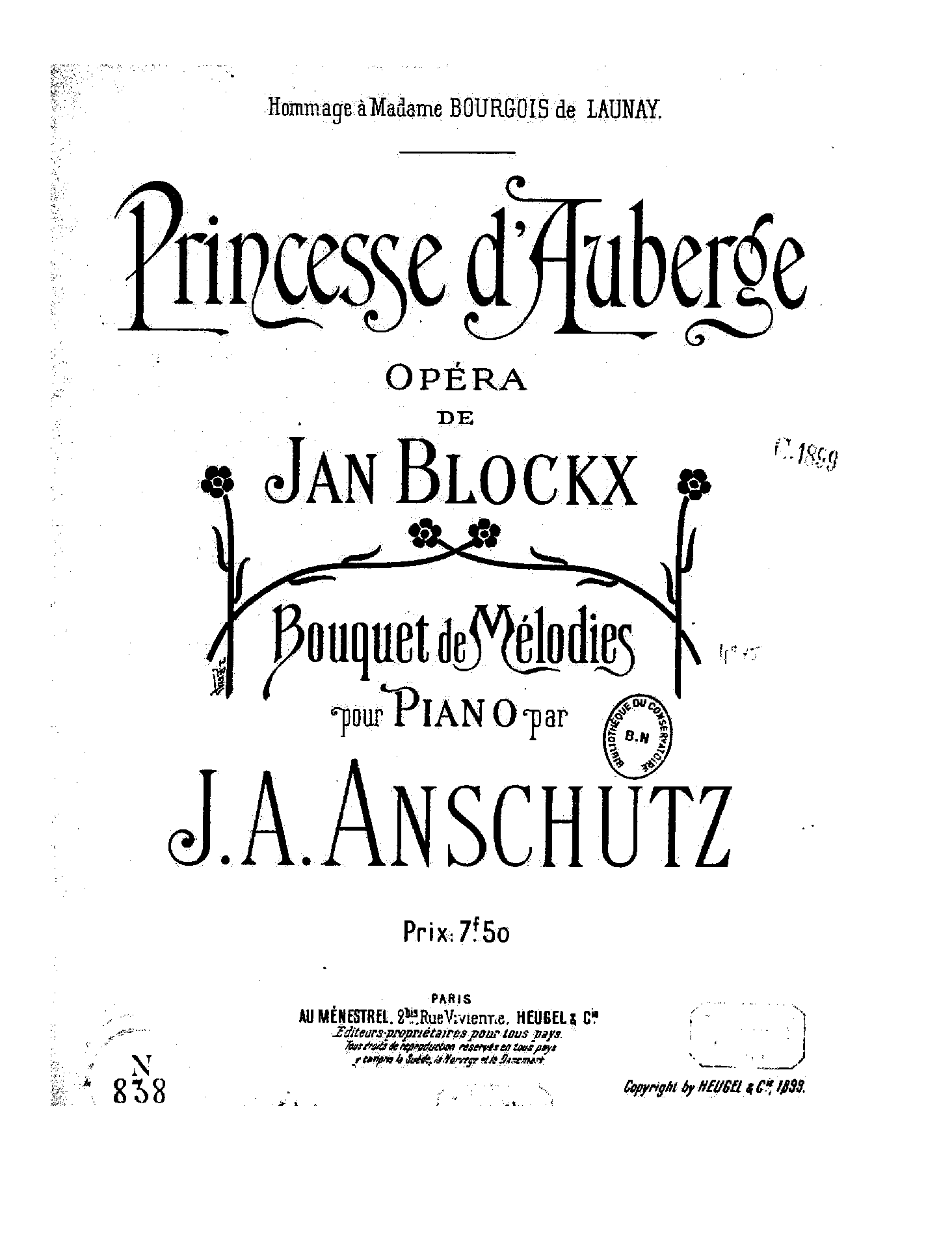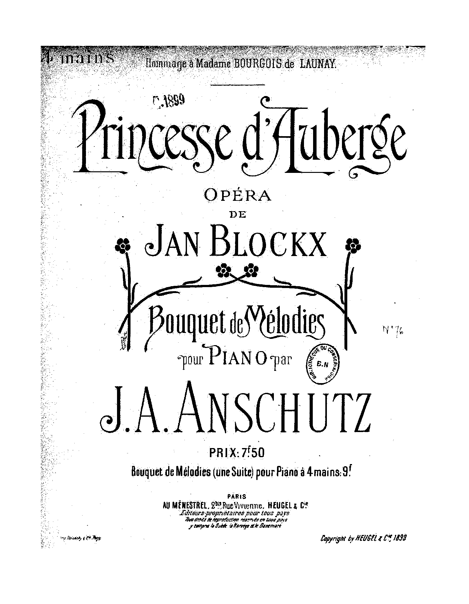 Princesse d'auberge. Opéra de Jan Blockx. Bouquet de mélodies.