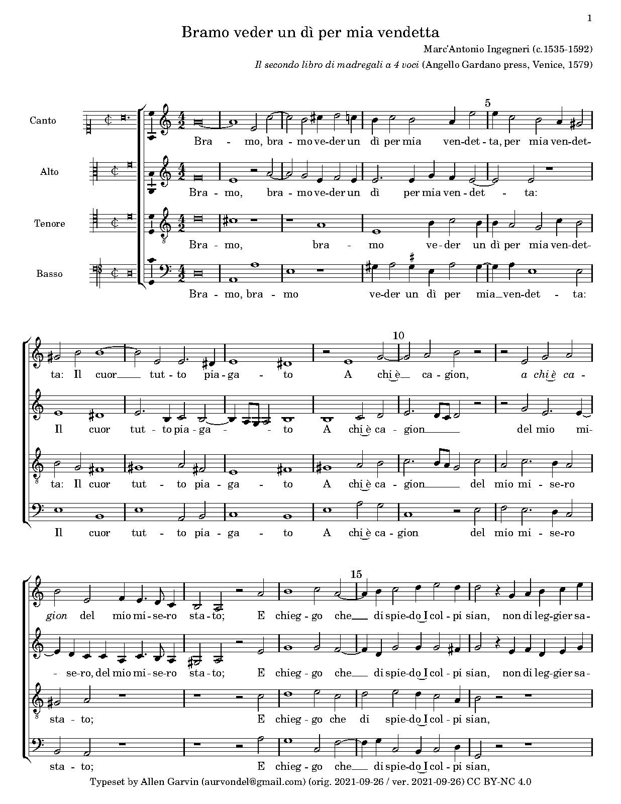 | First Publication | 1579 in Il secondo libro di madregali a 4 voci (Venice: Angello Gardano press) |