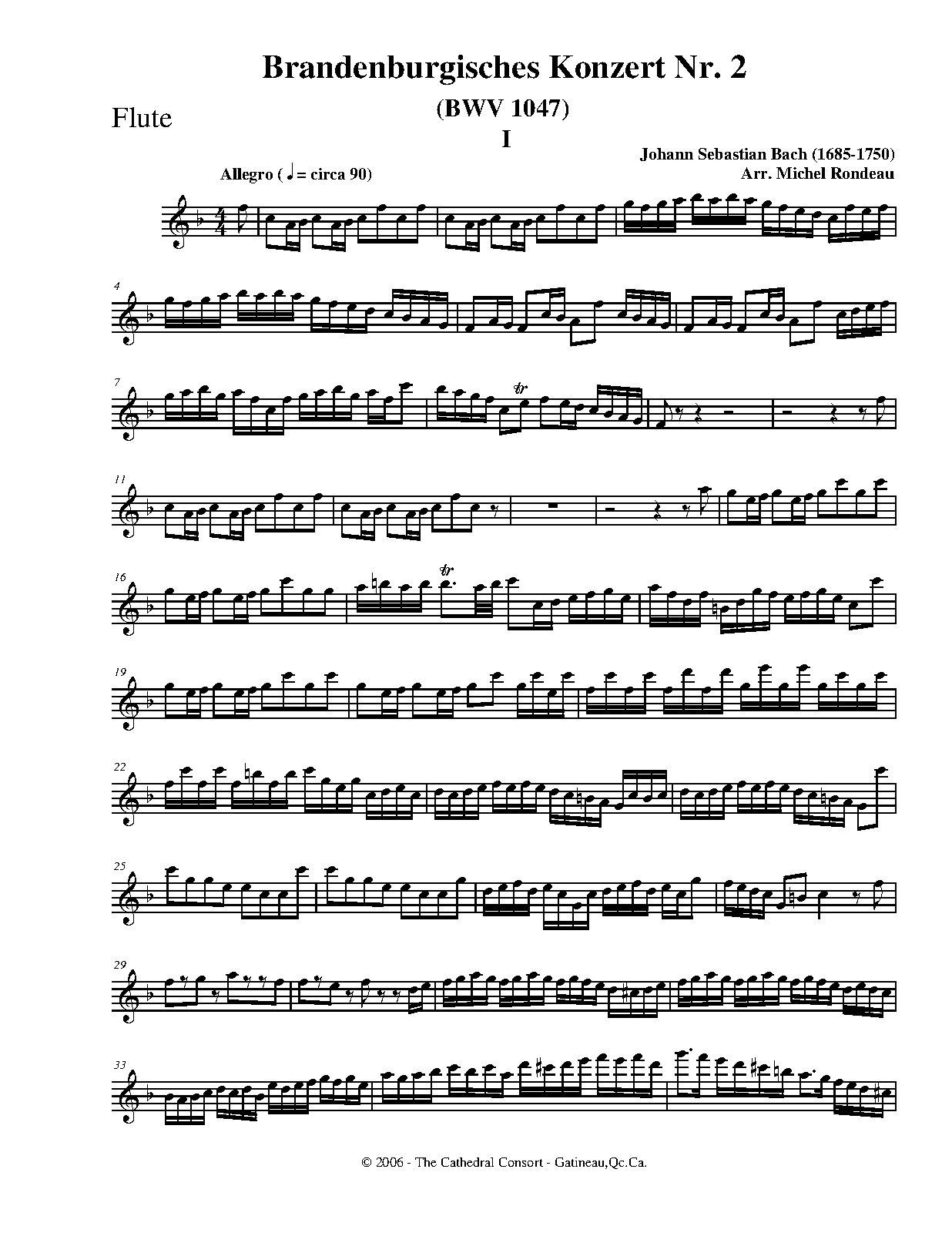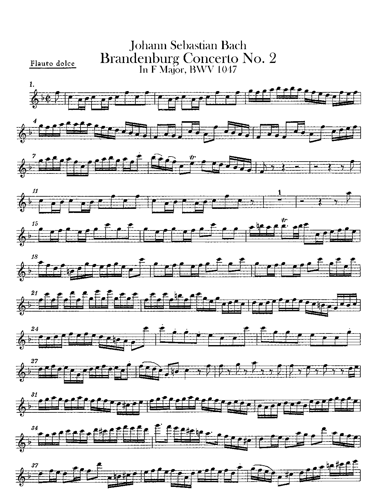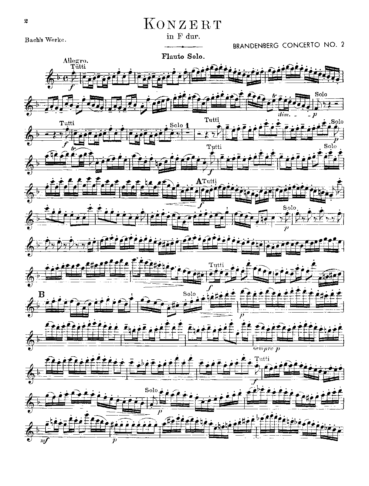 | Extra Information | *Probably composed in 1718 and copied into the 1721 holograph. The part is named as "flauto" (flute) in the holograph and nearly all printed editions, and is performed on flute (i.e., transverse flute) on both baroque and modern instruments on countless recordings. The name "flauto" is also shorthand for flauto dolce (recorder) which is featured at least as often as the orchestral flute. |