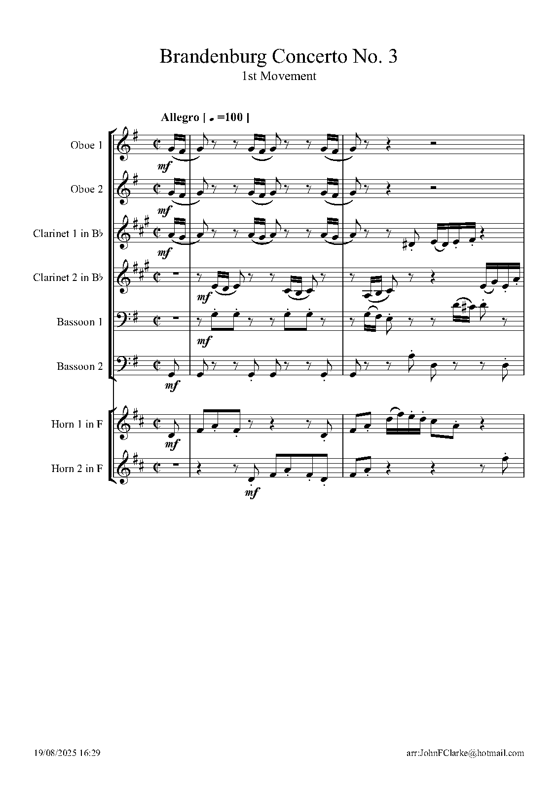 For 2 Oboes, 2 Clarinets, 2 Bassoons and 2 Horns (Clarke)