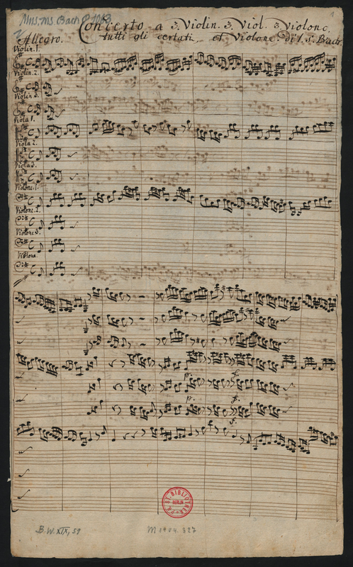 Misc. Notes Staatsbibliothek zu Berlin (D-B): Mus. ms. Bach P 1063 This manuscript is thought to preserve a version earlier than the final, dedicated version, although the deviation from the final version is rather small. This earlier version was the basis of the opening Sinfonia of the cantata Ich liebe den Höchsten von ganzem Gemüte, BWV 174.