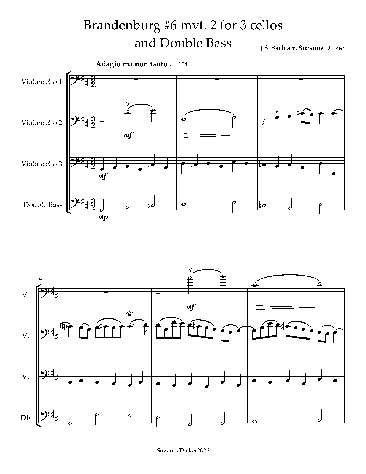For 3 Cellos and Double Bass (Dicker)