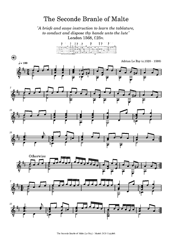 | Extra Information | in "A briefe and easye instruction to learn the tablature, to conduct and dispose thy hande unto the lute" London 1568, f.25v. |