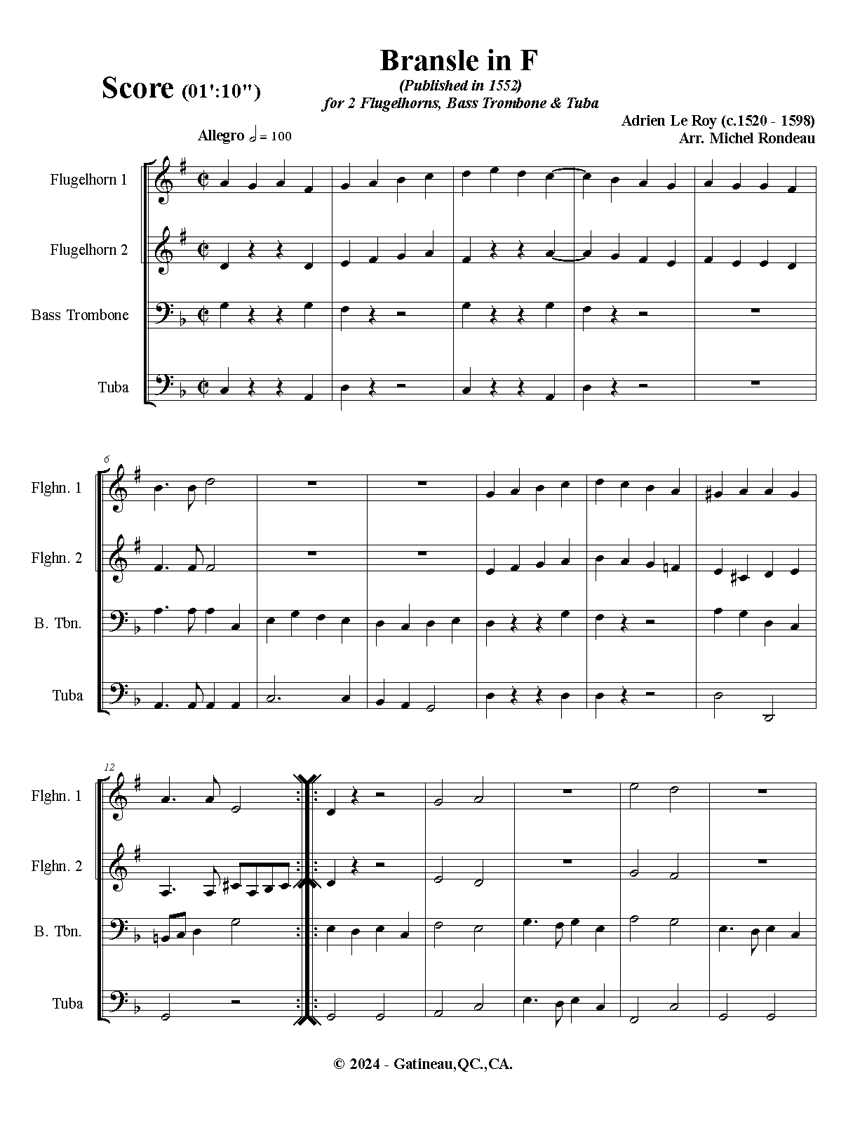 | Genre Categories | Dances; Works with undetermined instrumentation; For 2 flugelhorns, bass trombone, tuba (arr); |