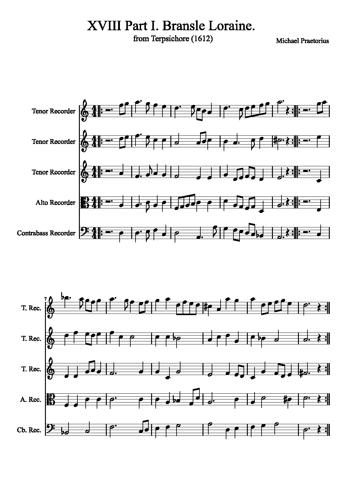 | Extra Information | These pieces were assembled and arranged by Praetorius for his 1612 collection. It is unknown how many, or if any, of the works in the collection were actually composed by Praetorius as opposed to being popular dance tunes arranged by him. The instrumentation is not specified in the original, and simply listed as "à 5". |