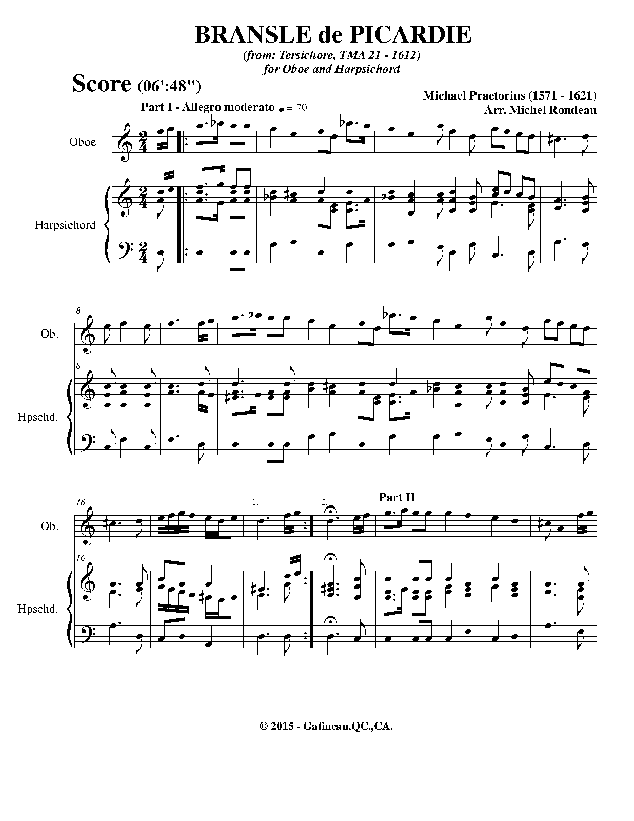 | Extra Information | These pieces were assembled and arranged by Praetorius for his 1612 collection. It is unknown how many, or if any, of the works in the collection were actually composed by Praetorius as opposed to being popular dance tunes arranged by him. The instrumentation is not specified in the original, and simply listed as "à 5". |