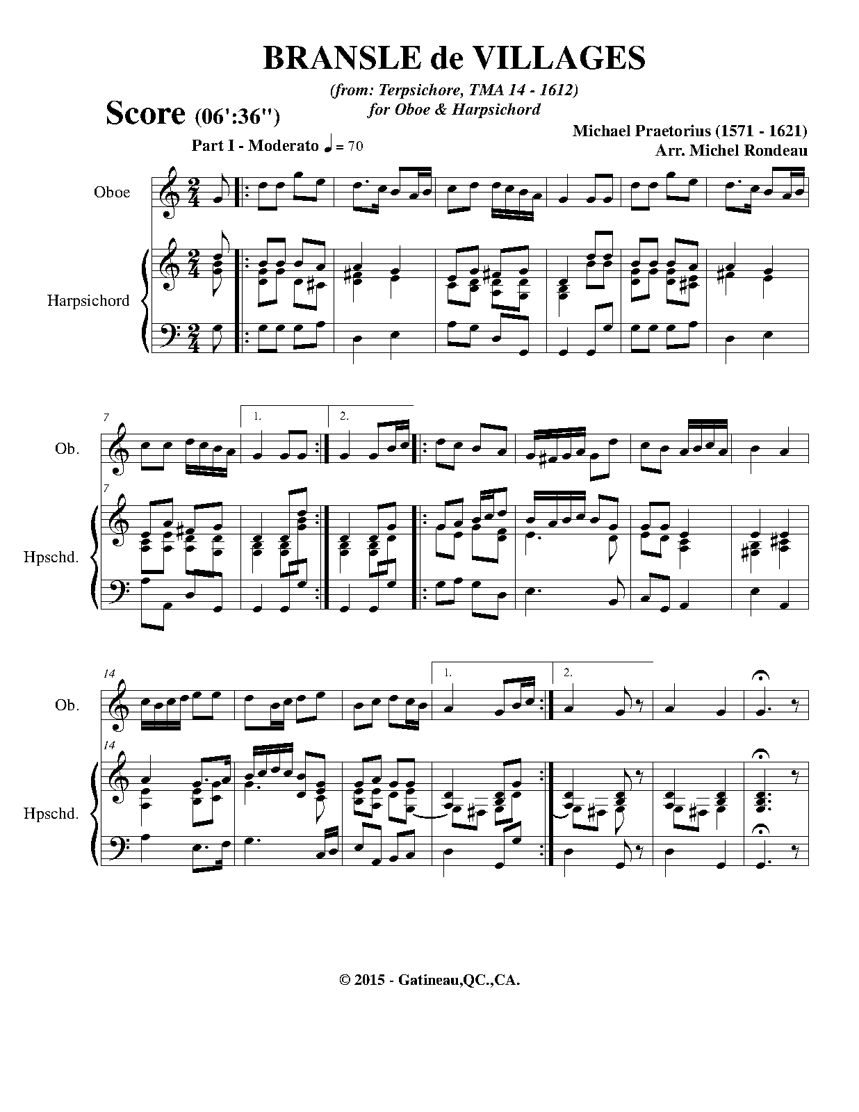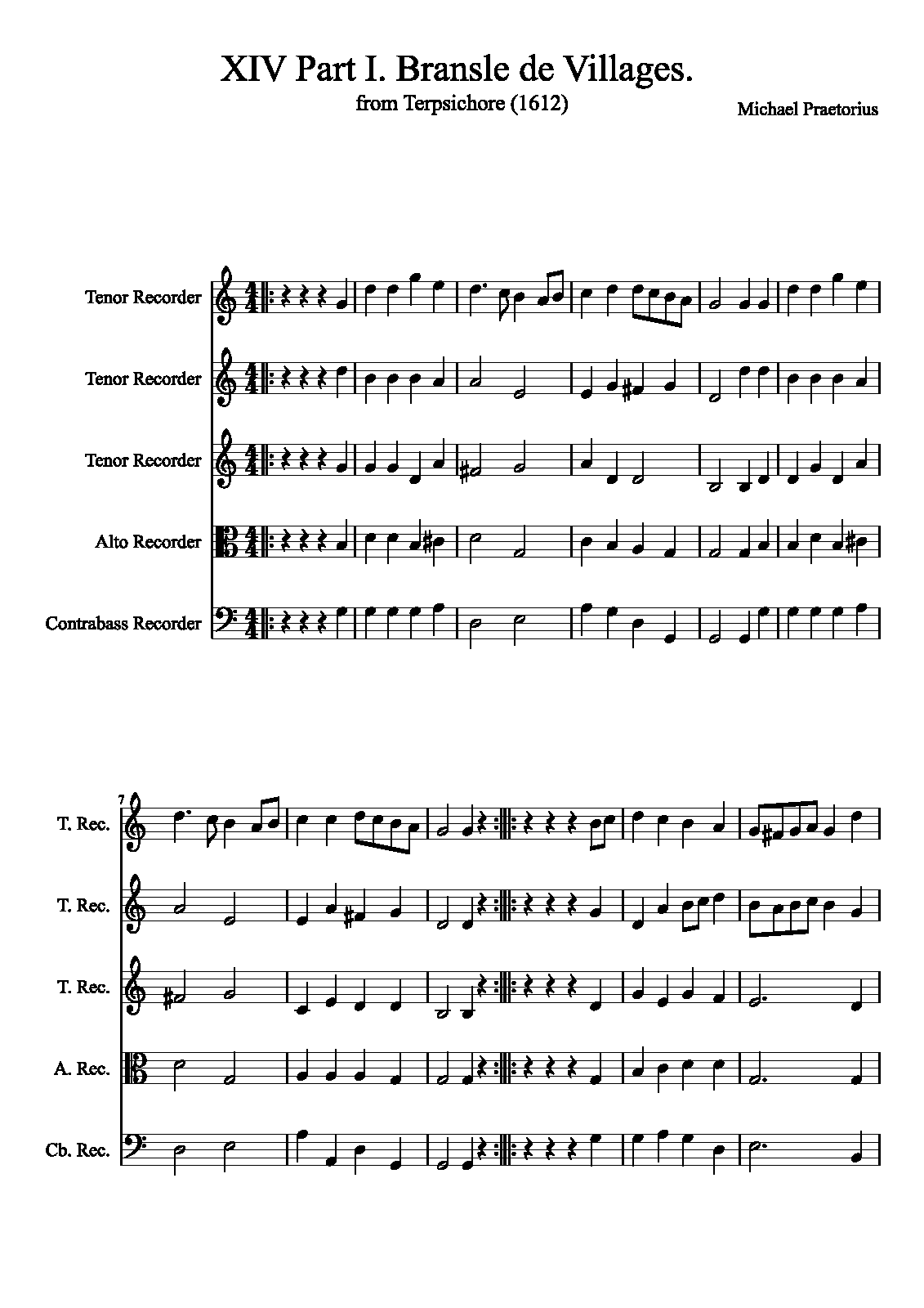 | Extra Information | These pieces were assembled and arranged by Praetorius for his 1612 collection. It is unknown how many, or if any, of the works in the collection were actually composed by Praetorius as opposed to being popular dance tunes arranged by him. The instrumentation is not specified in the original, and simply listed as "Ã 5". |