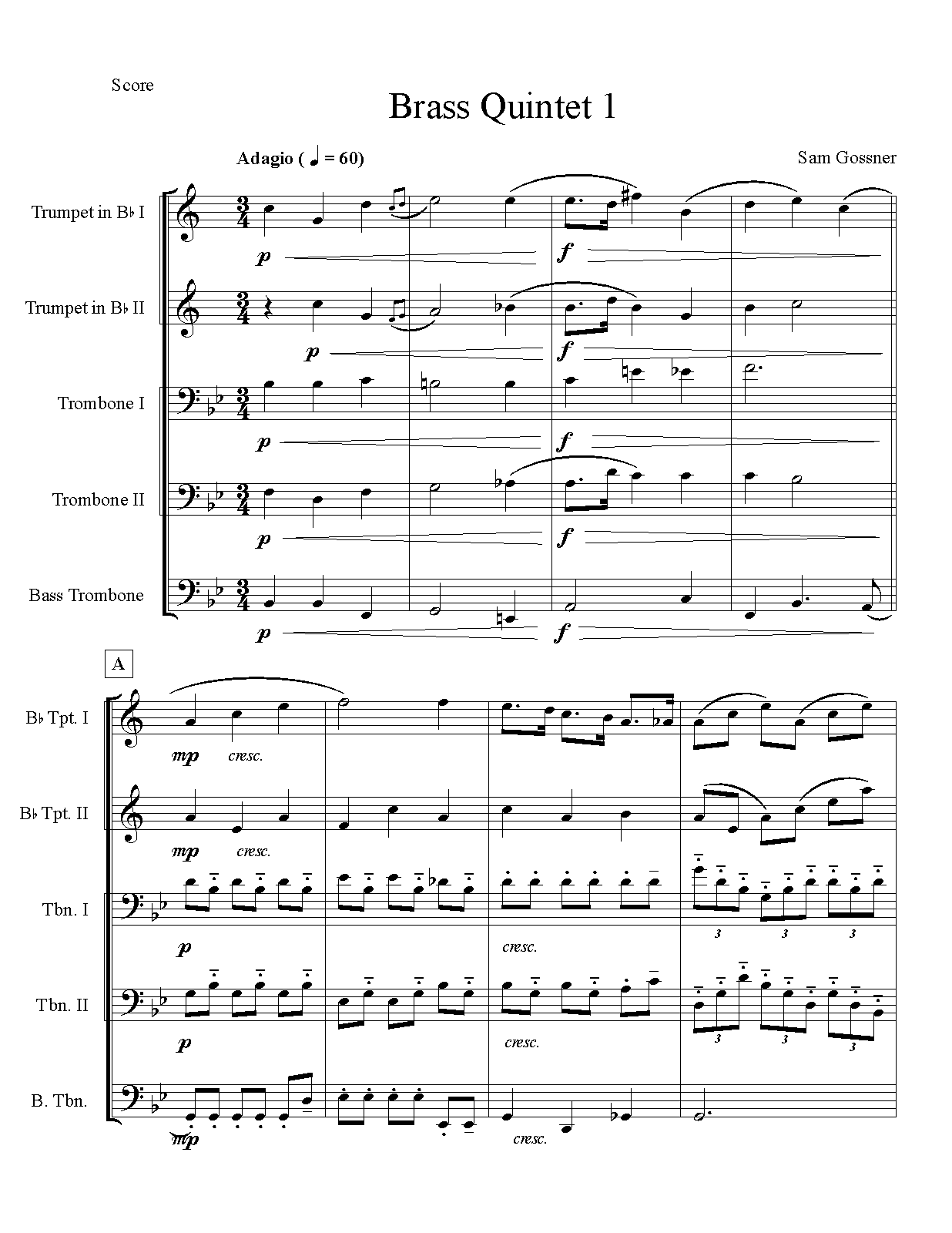 horn (F), 2 trumpets (B♭), trombone, tuba