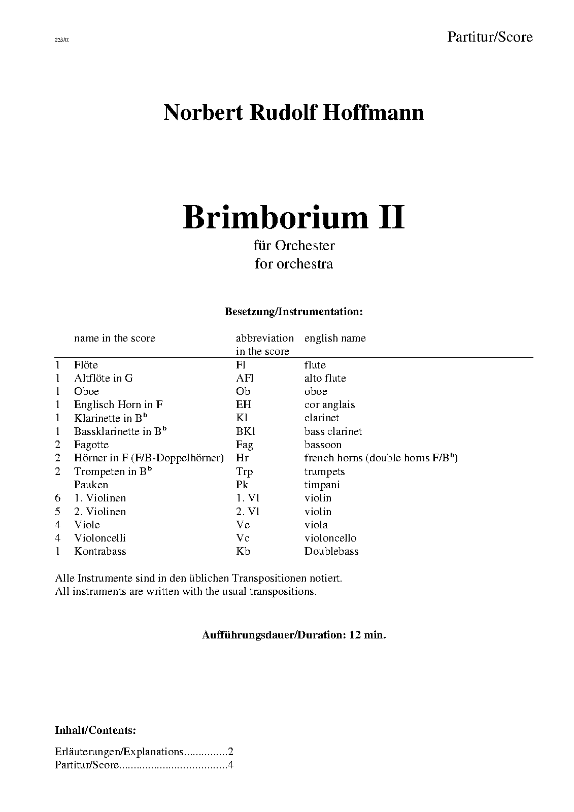 An explanation is necessary. The latin word brimborium means a state where everybody is frantically busy, but only „wind“ will be produced. A cynic would say that this state will be typical of all kinds of music – thousands of notes are played, melodies (as far as they are present in new music) go up and down, sometimes we hear rhythms...