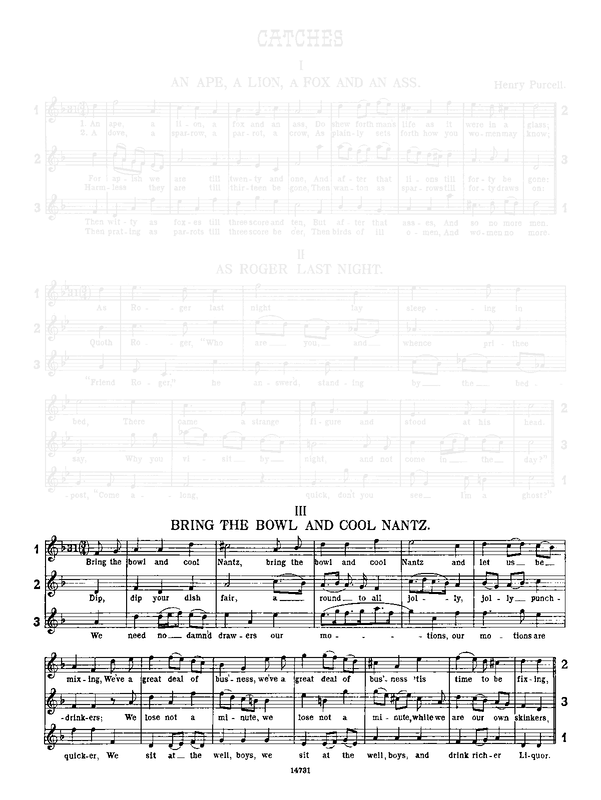 | Genre Categories | Catches; For 3 voices; For unaccompanied voices; |