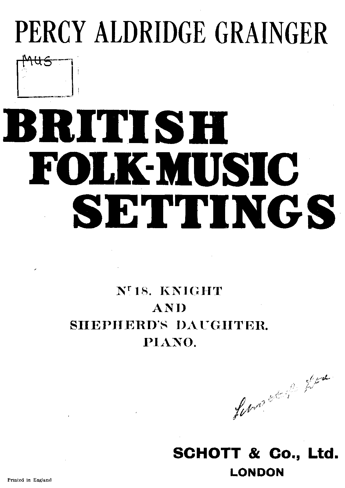 | Copyright Information | From 1918 forward, Grainger's works were nearly always issued simultaneously by Schirmer in New York and Schott London, with the copyight claim in Grainger's name. Grainger moved to the USA in 1915 and became a US citizen in 1918. |