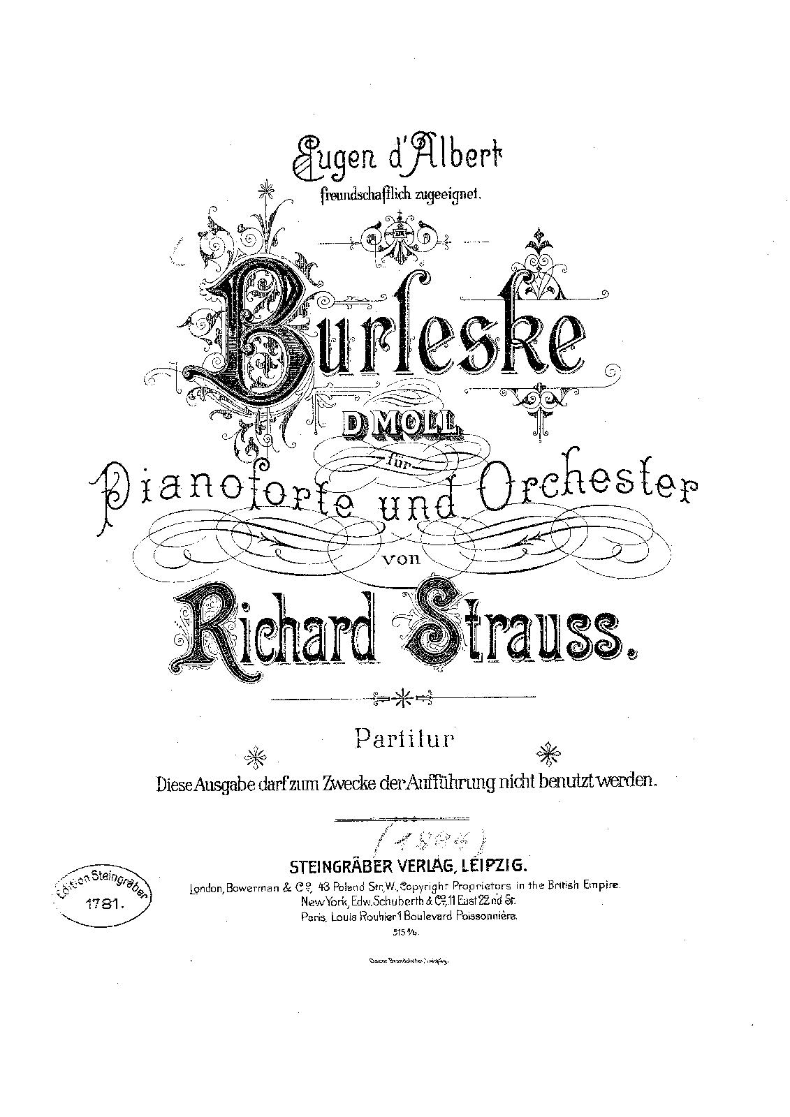 | Name Aliases | Burleske in d-Moll; Burleske d-Moll; Burleske in D minor; Бурлеска для фортепіано з оркетром |