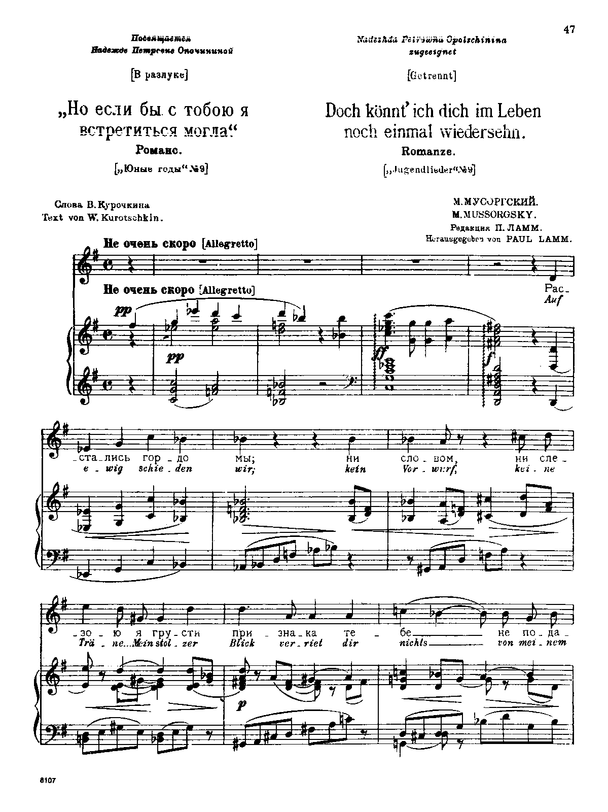 | Alternative. Title | Но если бы с тобою я встретиться могла; Doch Konnt ich dich im Leben noch einmal wiedersehn |