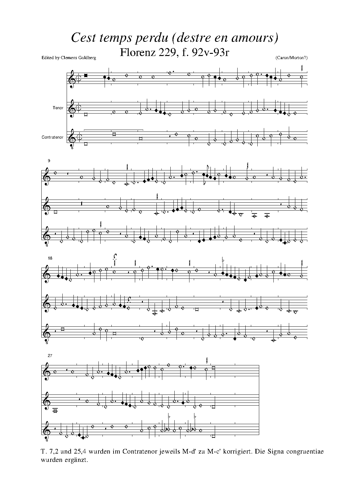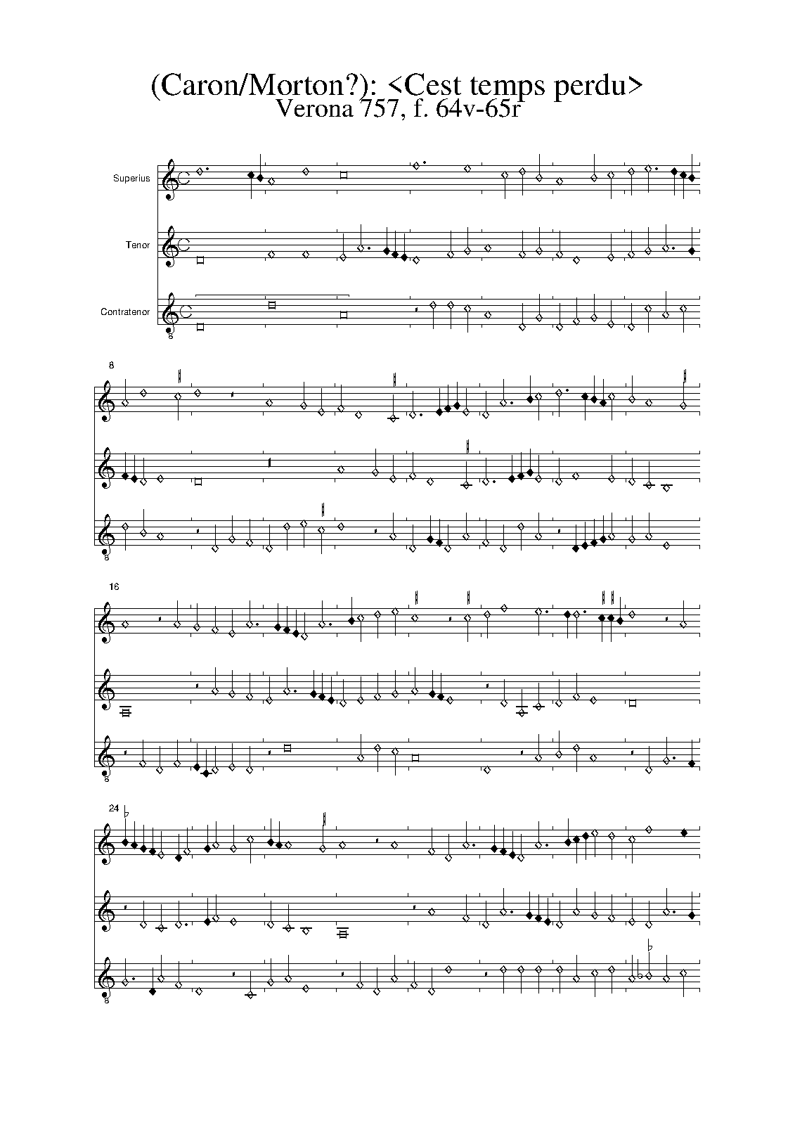 | Authorship Note Caron's authorship of this work is doubtful. In some sources, it is attributed to Robert Morton (ca.1430-ca.1480). |