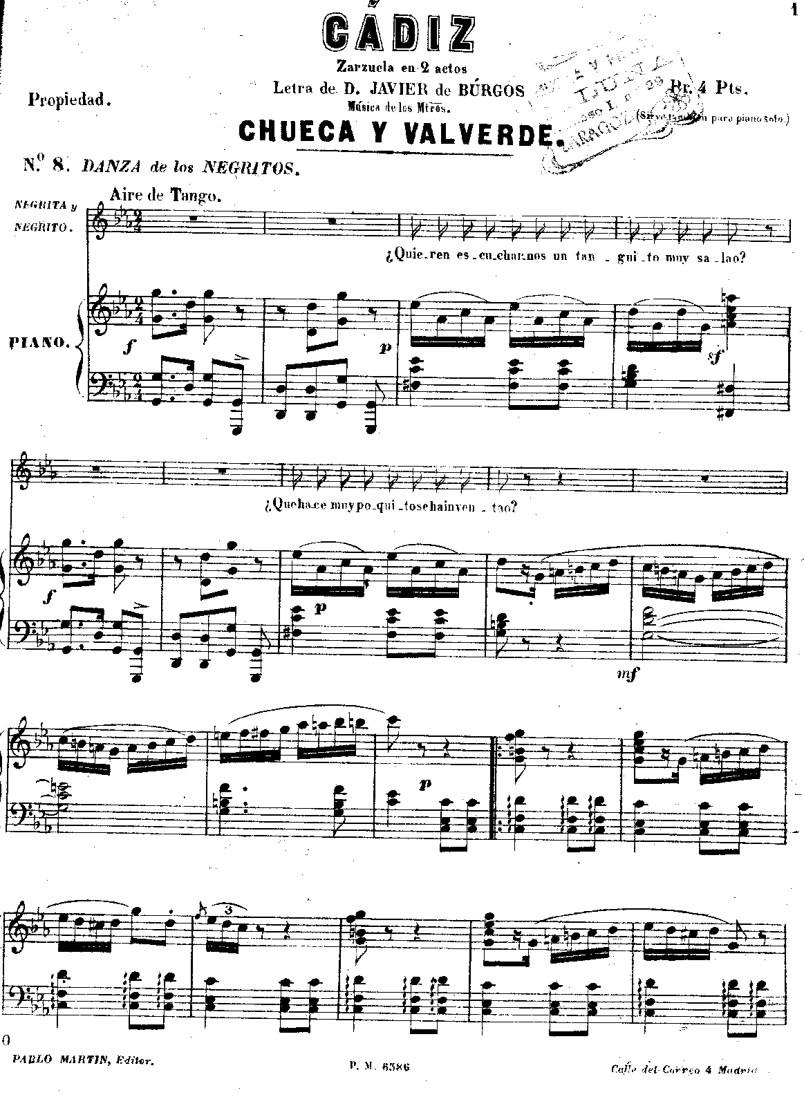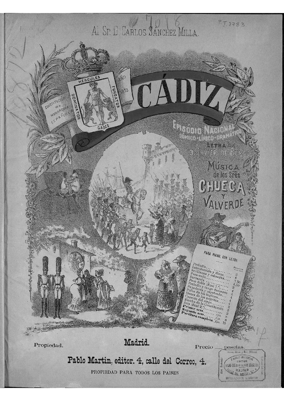 Composed with Joaquín Valverde (1846-1910). The Zarzuela is set in Cádiz and surroundings during the siege of the Napoleonic troops in 1812.