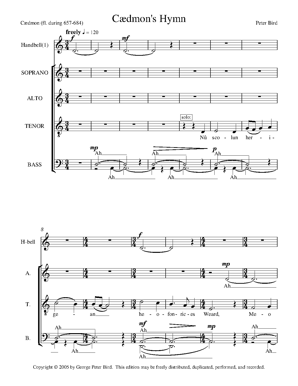 SATB a cappella, baritone solo, bell/chime/triangle on d"