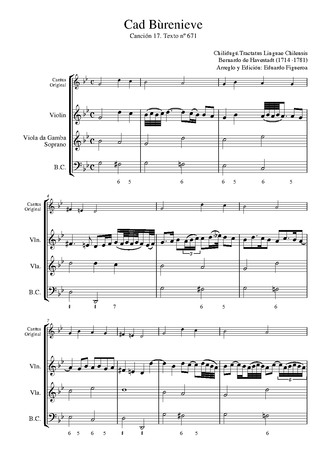 This comes from Havestadt's Chilidugu, sive Res Chilenses, vel descriptio, status tum naturalis, tum civilis, cum moralis regni populique Chilensis, inserta suis, locis perfectæ ad Chilensem linguam manuductioni etc. (3 vols., Münster, 1777). It contained "copious specimens of the native Chilean tongue, hymns, and valuable ethnographic notes, etc." (source: Wikipedia. Because the only musical item on that list is hymns, it is assumed that this work is a hymn, but tagging is subject to correction if an original is ever uploaded.