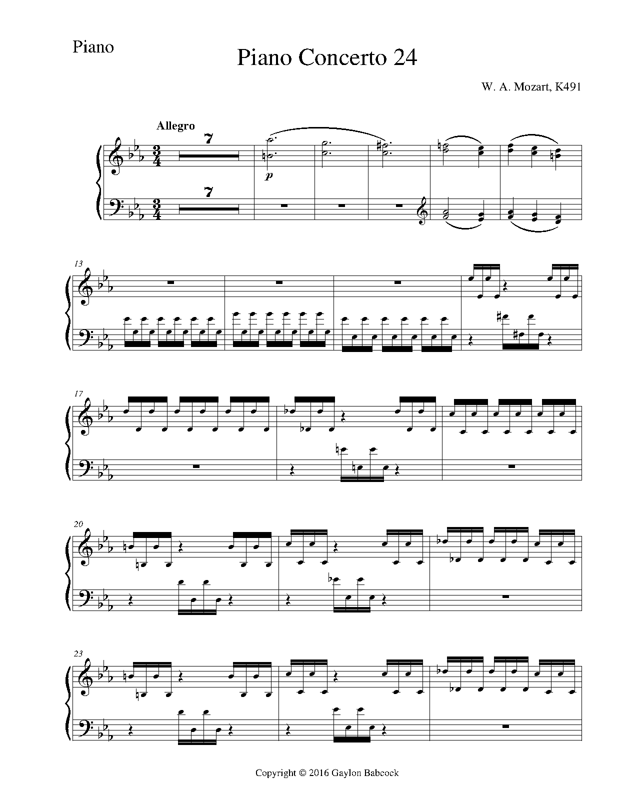 | Name Aliases | Piano Concerto No. 24; Piano Concerto in C minor; Piano Concerto No. 24 in C Minor, K. 491; K. 491; Klavierkonzert Nr. 24; |
