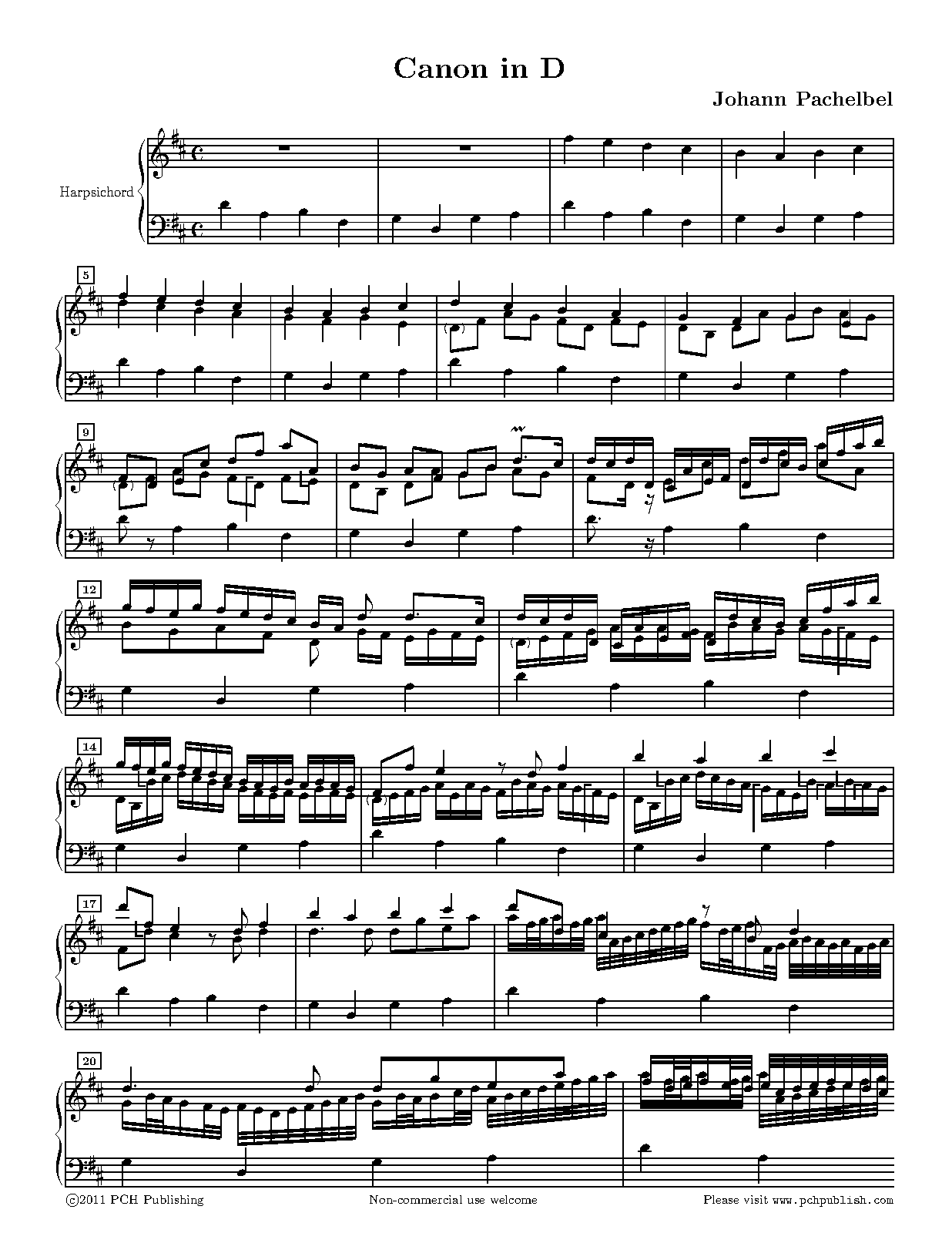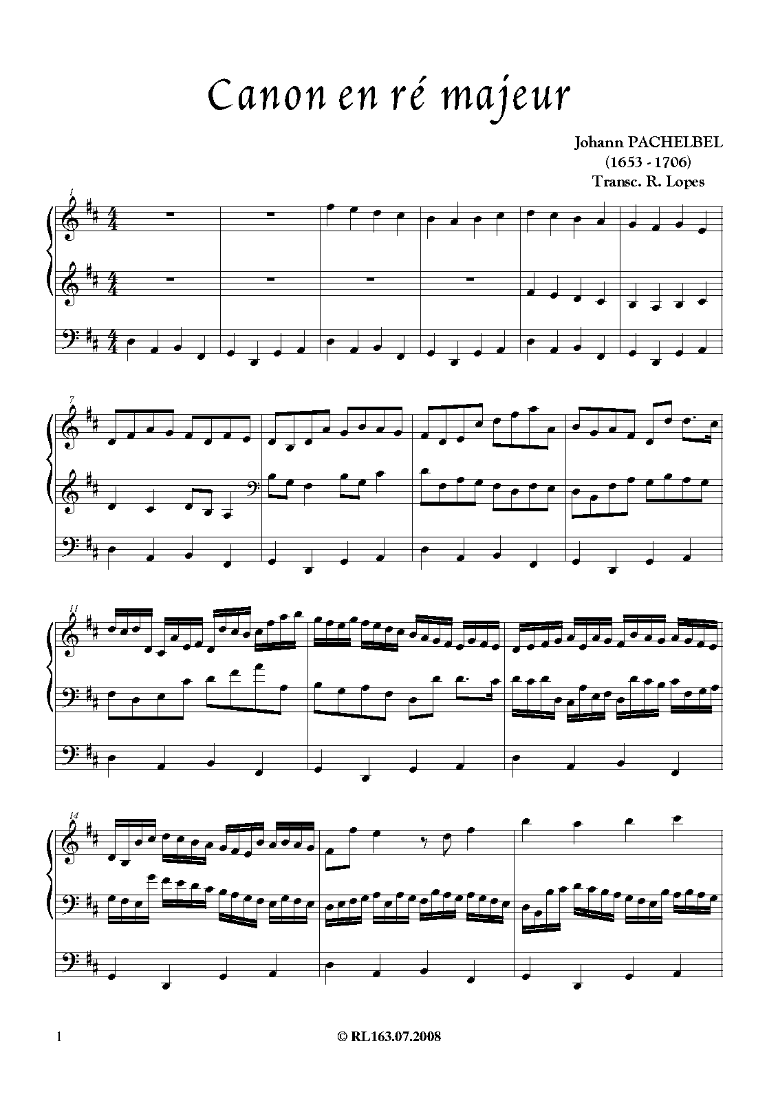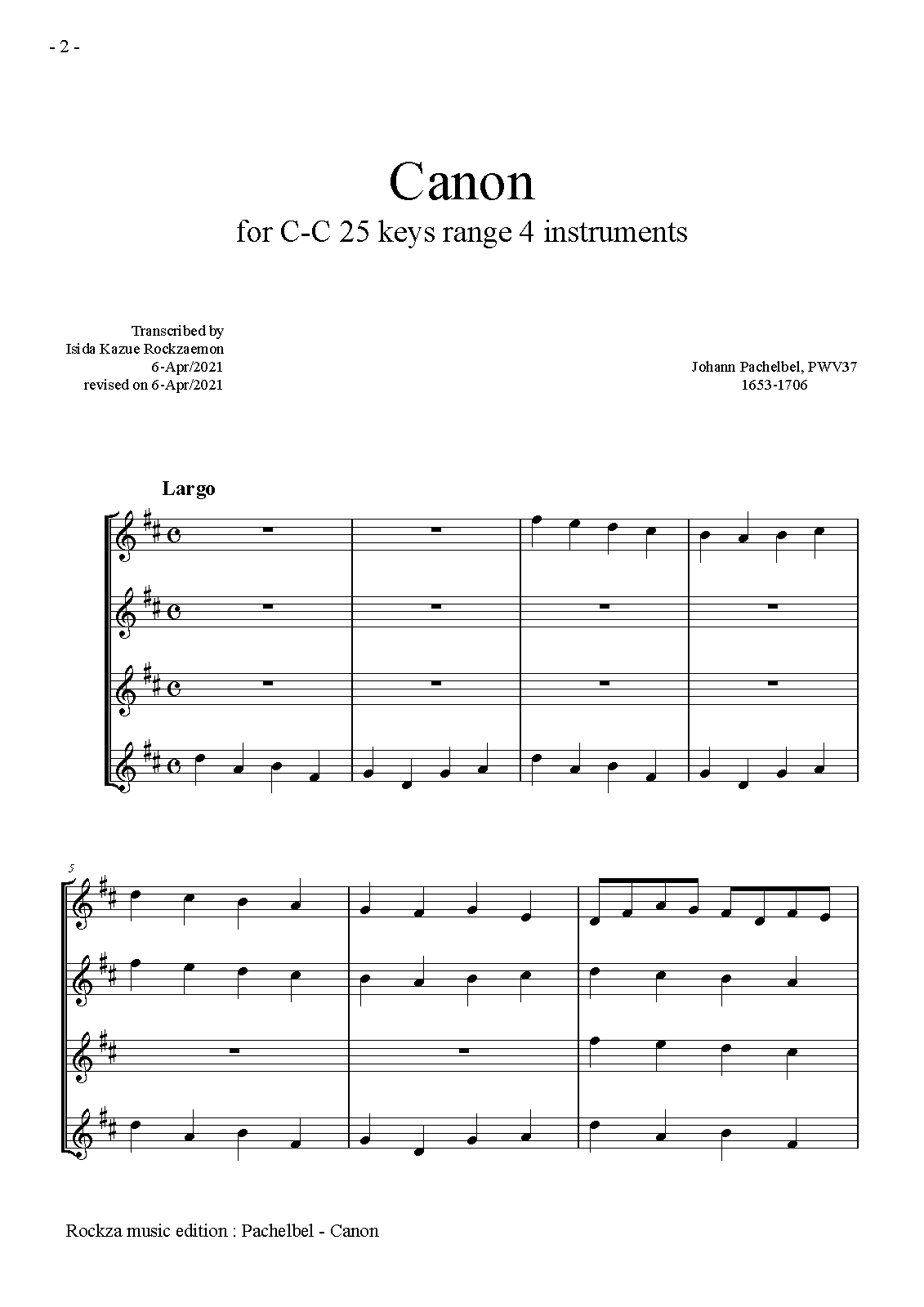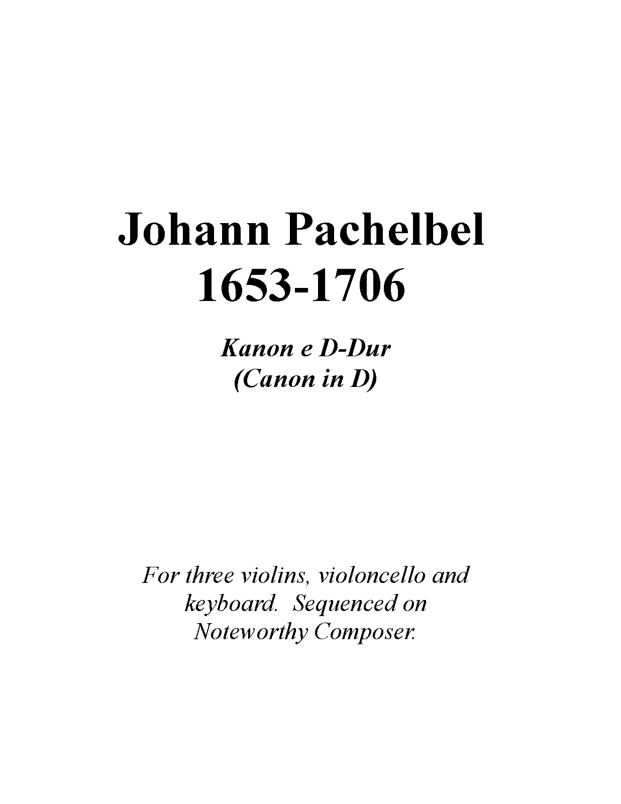 | Name Translations | D大调卡农; D大調卡農; Cânone em Ré Maior; Kanon D-dur Pachelbela; Kanon und Gigue in D-Dur für drei Violinen und Basso Continuo; |