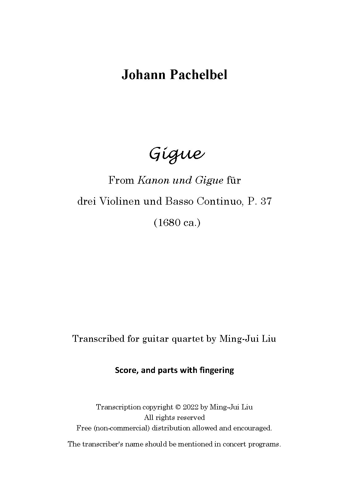 | Alternative. Title | Kanon und Gigue für drei Violinen und Basso Continuo |
