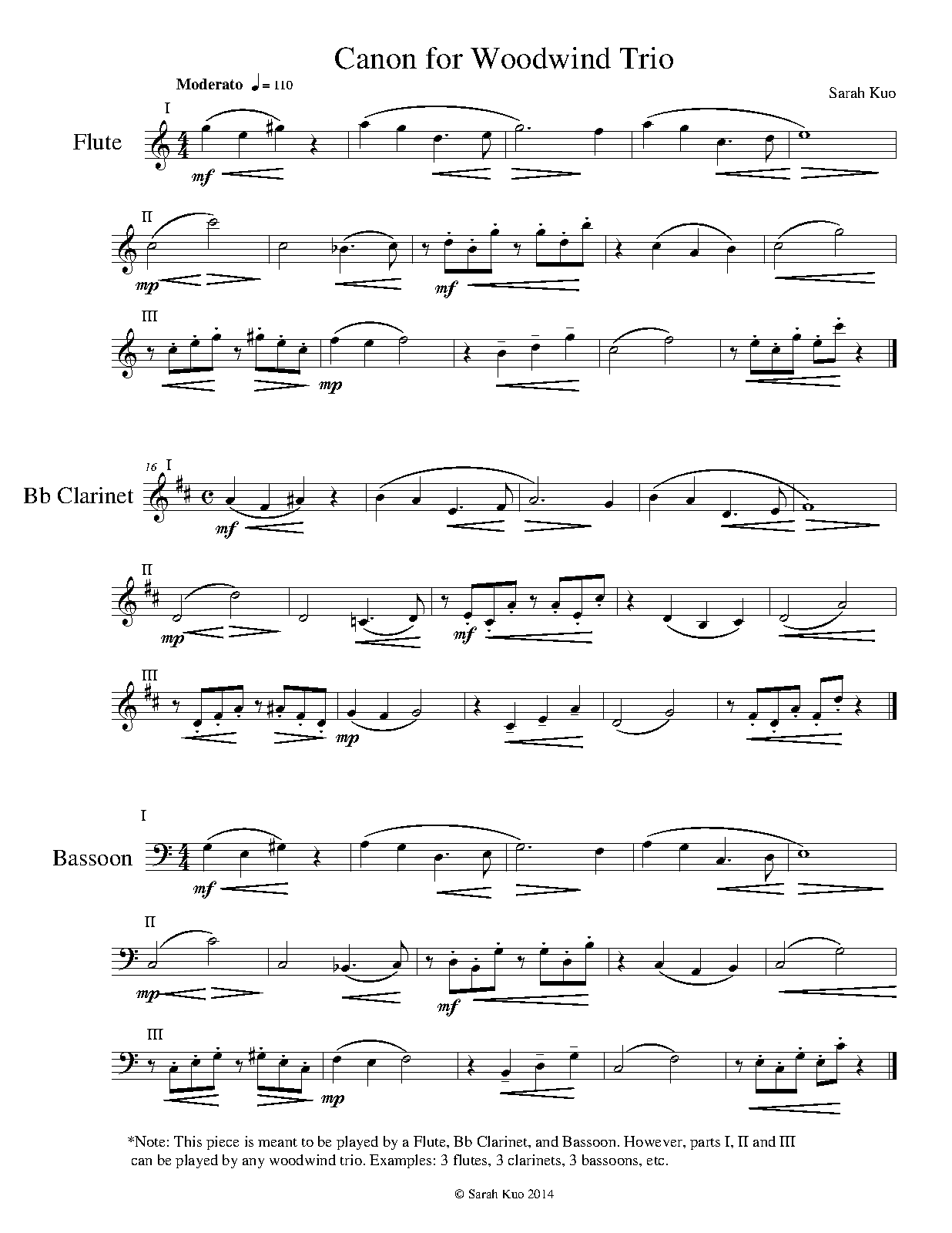 This piece can be played by any woodwind trio. Examples include 3 flutes, 3 clarinets, 3 bassoons, etc.