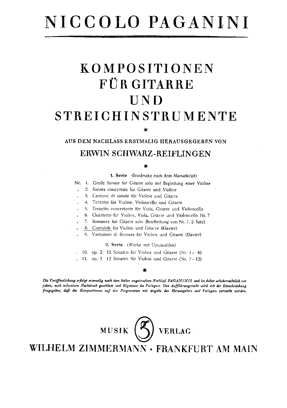 | Genre Categories | Cantabiles; For guitar, violin; Scores featuring the violin; |