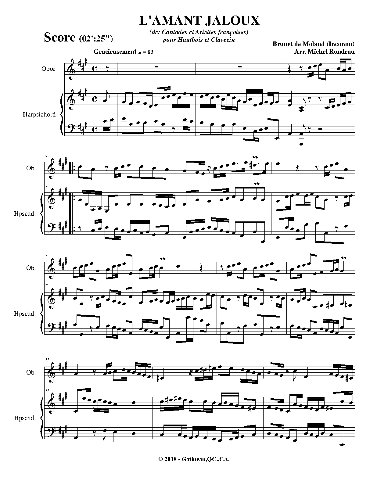 - 2. L’Amant jaloux (1 voix (C1 clef) et basse continue)