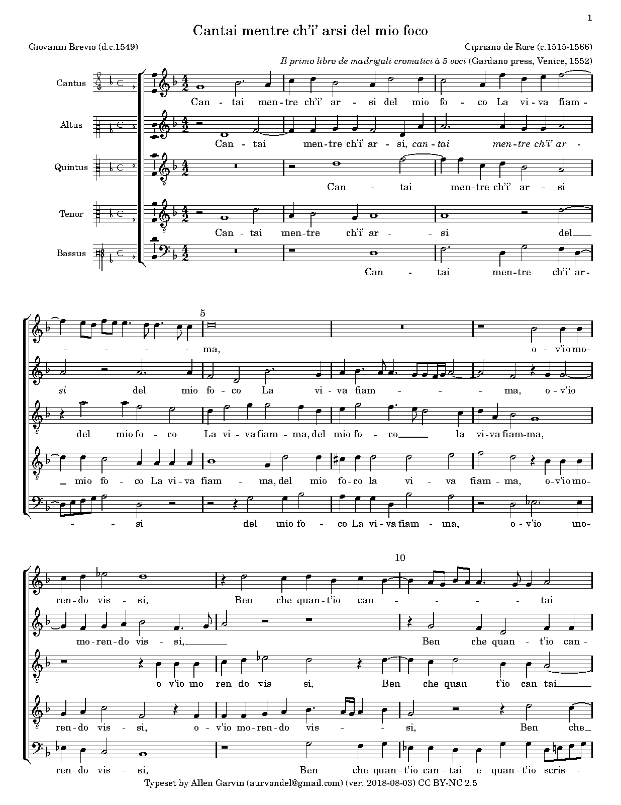 Possibly an earlier publication in I madrigali a 5 voci (Scotto press, Venice) (but there is no 1542 publication listed in WorldCat, so this may be erroneous).