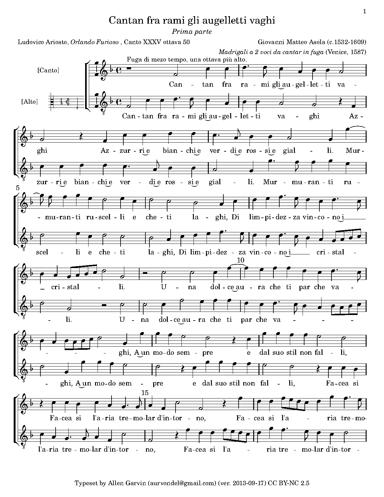 | Work Title | Cantan fra rami gli augelleto vaghi |